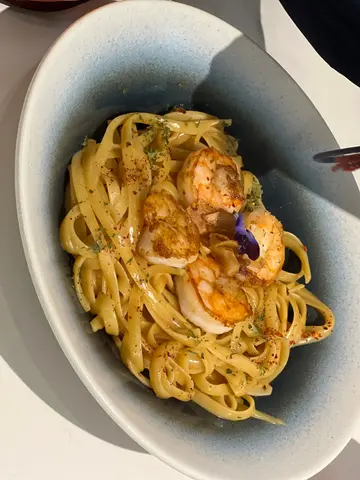 早几个礼拜嘅公众假期,去咗呢间喺内街嘅Cafe,lunch time去到都接近坐到满晒!店内主要以藤篮做主题,好多植物同埋墙上好有日落沙滩🏝️嘅感觉,好有东南度假风🤗🍝香草酱慢煮鸡胸蝴蝶粉 ($108)鸡胸慢煮之后肉质几滑唔鞋口😆蝴蝶粉嘅熟度啱啱好,意粉几有嚼口👍🏻香草酱仲配左啲松子食落更有口感,pesto嚟讲整体几唔错👍🏻🍤娘惹喇沙虎虾扁意粉 ($138)喇沙比想像中辣同后劲强,但好惹味! ☺️扁意粉挂汁!虎虾颇大只🍤🍦海盐脆脆牛角包窝夫配泰式奶茶雪糕奶茶雪糕一影完相就冧咗落嚟🤣 croffle热辣辣而且几松脆,同泰奶雪糕几夹😍🍫75%朱古力咖啡($58)好浓郁嘅mocha,钟意dark chocolate嘅话一流,唔会太甜又够浓😌…查看更多