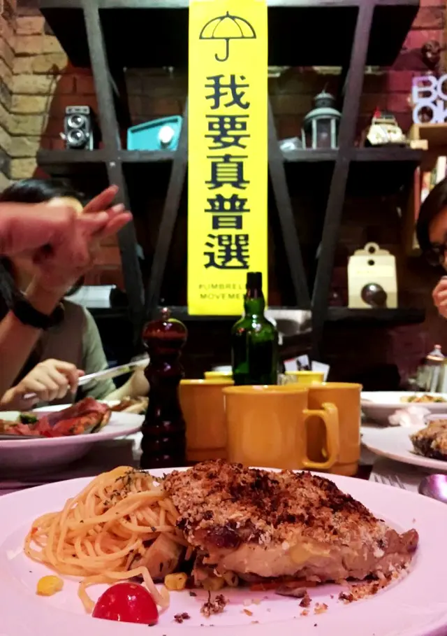 本身想食另一間餐廳,因為太多人而轉移到tc2。第一次起呢度食晚餐,晚餐大約158到198,再加一服務費。 極力推介 鮮果沙律佢係用 唔同種類嘅蘋果造成嘅沙律好清新,湯係用海鮮整。 叫咗一個牛扒同埋青醬手撕雞兩個都係配意粉,所有餐都可以選擇配飯或者薯菜, 如果食素嘅人可以選擇素食嘅餐。 餐飲叫咗杯朱古力同埋熱檸茶 ,朱古力上面寫咗秋涼兩個字提醒大家要注意天氣變化。 係香港而家呢個環境仲有餐廳立場鮮明表達對香港事件嘅睇法, 即使一餐晚餐係同朋友傾計互相關心近況 但係都從環境中感覺得到有好多人為著香港呢個地方而努力, 食呢餐晚飯係比自己有力量出番去。查看更多