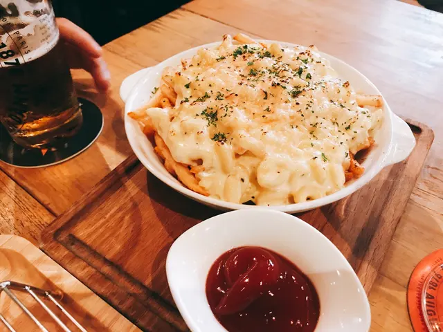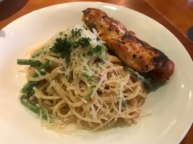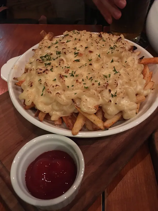 同朋友叫咗兩個意粉再加一個小食,香草醬蒜蓉意粉係幾好食,好香蒜味好惹味,chicken cream pasta嘅雞扒好入味,但就有少少漏,可能係因為我地叫左個Mac and cheese fries做小食。全餐最抵讚係個薯條,份量多唔再講,仲要好足料好多芝士,雖然都要百幾蚊但依個份量係灣仔區又要好食真係少,本身想再去食但係點知close左