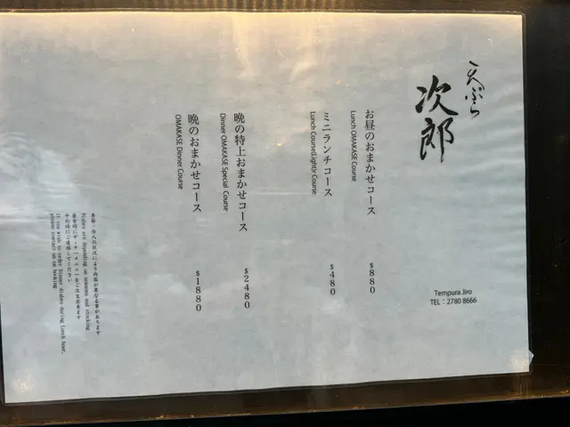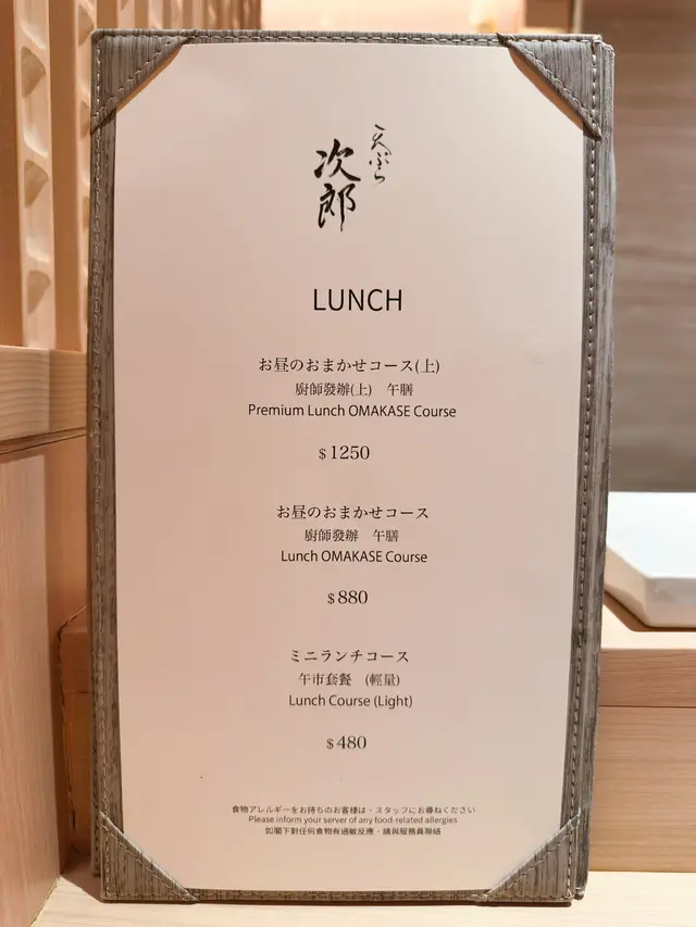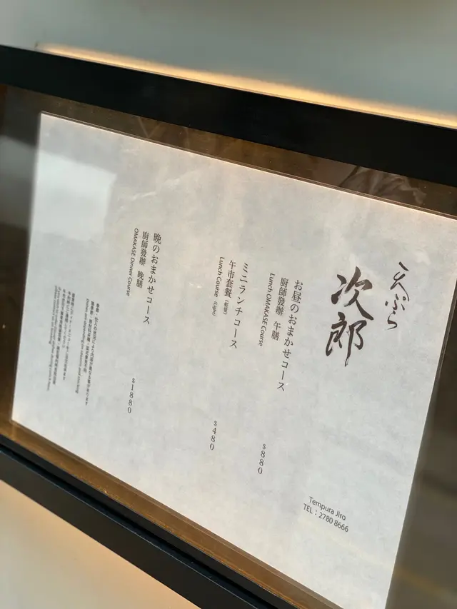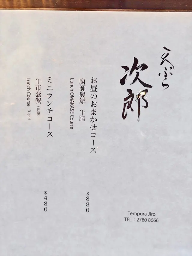Tempura Jiro (中环) 网上订位即赚Rice Dollars 网址: https://s.openrice.com/QrLS0fieA00 地址: 香港中環士丹利街50號信誠廣場地下E號舖 电话: +852 27808666