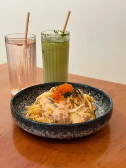 「Tera」纯白外表看起来相当日式,内里装修风格走日式简洁寺庙设计,悬挂一个大大的灯笼🏮。柚子醋蟹肉牛油果沙律 $98前菜先叫咗一份柚子醋蟹肉牛油果沙律,柚子醋另上,沙律表面铺上一层蟹肉丝及牛油片,底下就系沙律菜、车厘茄、粟米粒,蟹肉丝味道鲜甜,加入柚子醋汁嘅沙律菜入口清爽,令人胃口大开樱花虾大虾扁意粉 $118叫咗一碟樱花虾大虾扁意粉,大虾一共有四只,整齐排列喺碟边伴碟,意粉除咗加入樱花虾干,仲有海苔丝、蘑菇片、洋葱等材料,用上扁意粉,忌廉酱汁浓稠,包裹喺意粉上,食落相对干身啲榛子焙茶梳乎厘班戟 $138最后甜品拣咗一个梳乎厘pancake,梳乎厘一共有三份,口感松软,材料有焙茶忌廉、焙茶牛奶布丁、榛子脆脆、榛子酱、金宝,焙茶牛奶布丁用上北海道3.6牛奶制成,口感滑溜,带淡淡焙茶香气,加埋榛子脆脆、榛子酱一齐食香甜有口感焙茶生椰乳 $58天气炎热拣咗杯冻饮,焙茶生椰乳入面焙茶苦涩味唔算明显,加上生椰乳嘅奶香,相对易入口桂花国宝茶 $52想饮得健康啲,就拣选咗喺养生花茶入面嘅桂花国宝茶,桂花茶香气扑鼻,入口有明显桂花香,清新解腻…查看更多
