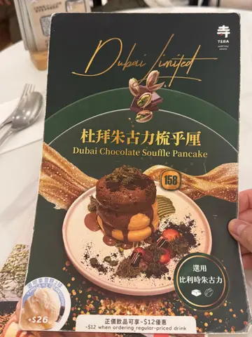 之前到访过大围呢间TERA分店!佢地既梳乎厘pancake真系超正✨呢排有点挂住佢地既pancake所以又再回访了💖Cafe空间感大😍走庭园风格,有唔少绿色植物既摆设🌿🌳有小清新既气息,喺呢度用餐可以好好放松一下🥰❥ 海鲜意大利饭 $178有新鲜带子、鱿鱼圈同大虾🍤😋每样海鲜都有两件,两个人share唔使争🤣带子几厚身,煎得好香口,食落爽甜弹牙~大虾啖啖肉,鱿鱼圈令成个饭更有口感🥰意大利饭好creamy!粒粒饭都渗满海鲜汁,口感丰富好味👍🏻❥ 安格斯牛肉汉堡配薯条🍔 $138Burger好厚身,安格斯牛肉大大份,牛味香浓,唔会煎到好老好干身😍另外仲夹住半溶芝士、蕃茄、生菜🥬~整体味道好夹,食落juicy,口感好满足🥰薯条份量多,够晒热辣香脆❤️🧡❥ 杜拜朱古力梳乎厘 + 云尼拿雪糕🍦 $184Pancake卖相好靓😀食落好松软,口感轻盈,充满蛋香🥚朱古力味超浓郁🍫🍫🍫Pancake旁边仲有士多啤梨、杜拜朱古力、曲奇饼碎、蓝莓、开心果碎等等🫐🍪🍓口感好丰富!特别加钱叫埋云尼拿雪糕🍦一啖pancake一啖雪糕,冷热交融,幸福感满满💕❥ 香橙美式咖啡 +$40带有清新既橙香,饮落去酸中带苦,气泡感十足,特别提神☕🍊❥ 草莓番石榴乳酸梳打 配草莓果干 +$36乳酸梳打清新爽口,配上草莓果干,口感更丰富!每一啖都系草莓既甜香🍓好解渴🥤…查看更多