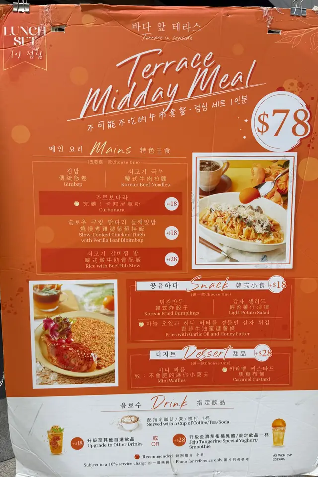 去咗启德Airside 商场入面嘅 terrace in seaside,装潢一样有种韩系渡假味——木系设计、暖色灯光、榻榻米座位坐得舒服,窗边位望出去一片夜空,气氛好chill❤️ 🍖 韩式猪手(半份)皮滑肉嫩,带住淡淡咸香🤗 胶质丰富但完全唔油腻,沾少少店家特制辣酱更开胃👍🧇 开唔开心试咗先知嘅开心果蜜糖窝夫窝夫热辣辣、外脆内软,淋上蜜糖后香气四溢🤤碎开心果令口感多层次,配埋雪糕一齐食有种幸福感🤗🍝 韩式烤牛肉奶油意粉西韩 fusion 做得几平衡✅ 牛肉软腍、甜味突出,但唔掩盖意粉嘅香😙 奶油酱顺滑又唔会太腻,属于可以清碟𠮶种🥳 ☕ 饮完唔会手指指饼咖啡咖啡香浓却唔苦,带少少果香味,饮落顺,午后一杯最啱😆 🍇 带点惊喜的香印提子奶盖绿茶甜香嘅提子味遇上微涩绿茶,非常清新🥰 上层奶盖厚滑有层次,饮完心情会好咗几度😎✨ 10 月限定推广 📍【一匙即中 $3000 旅游礼劵】食完仲可以玩小游戏试手气!凡于店内消费满 HK$500 即可获一条锁匙,HK$1,000就有两条,以此类推。店内设有一个宝箱,入面藏住总值$3,000嘅旅游礼劵! 每位参加者有30 秒时间观察锁匙外形,再喺20 条锁匙中拣一条开锁。成功打开即赢旅游礼劵💰!活动推出后仲有5 位幸运儿可享「全单免费优惠」,有食有玩,真系 fun! …查看更多