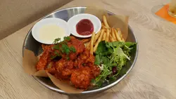 每次看到橙帽子就想起炸鸡,这次光顾yoho 分店的!半半炸鸡半半炸鸡的口感真是无可挑剔,外皮酥脆,内里鲜嫩多汁。不同味道的香料更令人垂涎,还附带上薯条及蔬菜呢!A. 让人疯狂的蜂蜜炸鸡酥脆的外皮裹著甜蜜的蜂蜜酱,甜中带咸,非常入味,吃上几块就让人忍不住想再来一份。B. 假装很温柔但是辣的卡邦尼炸鸡这被名字吸引,看似温柔,却藏著一丝辣味,让人惊喜。卡邦尼酱的香浓与辣味交织,让这道菜变得层次丰富,确实不错。L.A. 牛肋骨牛肋骨的肉质软嫩,酱汁浓郁,烧烤的香气四溢。搭配上微微的甜味,让人回味无穷,切好的一片片更加方便食用。玫瑰酱八爪鱼猪五花意粉意粉搭配创意十足,八爪鱼的鲜美与猪五花互相辉映,再加上玫瑰酱的独特风味,让整道菜充满了浪漫的气息,洒上了点点红椒粉,色香味也没落下初夏青柑柚子梳打梳打饮品清新爽口,青柑与柚子的搭配非常合拍,微甜的口感,让人感受到初夏的气息,解渴又提神。济州柑橘乳酸梳打乳酸梳打更是让人惊喜,济州柑橘的酸甜味道和微微的奶香交织在一起,颜色漂亮,味道清新,伴均后喝很是味美。比初恋还要甜的蜜瓜窝夫最后,蜜瓜窝夫的甜度真的超乎想像,每层的忌廉也是蜜瓜甜味,再搭配上香浓的冰淇淋,真的真的让人感受到比初恋还要甜蜜的滋味啊!餐厅9月份推广: Terrace拯救炎炎的你限定星期一至星期四,气温越高,饮品越抵饮!跟据香港天文台App当日最高气温,全场饮品享以下优惠:35°C或以上 → 65 折32-34°C → 67 折31°C或以下 → 68 折已经约好朋友下星期再过来一起饮饮食食了。…查看更多