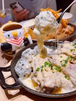 「辛苦揾嚟志在食」,最近和同事来到位于海港城的🇰🇷韩式餐厅Chill一Chill🤪。其实已经来过几次,🍊橙色的格调令人有焕然一新的感觉🤩,心情也顿觉舒畅。跟朋友研究了一阵子,就点了以下菜式:🐔半半炸鸡(无骨)让人疯狂的蜂蜜🍯炸鸡吃—口就想原谅世界的粟米🌽炸鸡炸鸡可挑有骨无骨,亦有不同口味选择。炸鸡炸的恰到好处,外皮脆脆,内里热辣辣。蜂蜜味道甜甜的又不会腻滞;粟米炸鸡有种椒盐味,除了炸鸡出色外,薯条、粟米也相当出色,令人欲罢不能🤪。🥚鸡蛋多过饭的蛋饭卷认识我的人都知我最爱吃饭卷,今次吃了未试过的口味,就是「鸡蛋多过饭的蛋饭卷」,👀眼见鸡蛋的确占了很大面积。还有青瓜、黄萝卜、红萝卜、芝麻,吃入口有麻油香,亦是超丰富味道,下次也一定要encore😋!🐷泡菜猪肉煎饼微辣的泡菜,配上猪肉🐷是绝配,整成煎饼也很惹味!最欣赏煎饼煎得很薄,不会太饱滞,两个人吃刚刚好!🍓🧇庆祝生日叫的生日窝夫充满粉红气场的生日窝夫超巨大🧇,粉红色外层,上面还有甜甜的草莓🍓。最出色是当中的忌廉,不会太甜,也不会有腻滞感。🍈🍹圆碌碌蜜瓜沙冰本身我就是「蜜瓜控」,甜甜的蜜瓜🍈令人垂涎欲滴🤤,也很清甜。加上在炎炎夏日,饮下沙冰就有种透心凉的感觉,非常消暑。☕️饮完唔会手指指饼咖啡饮一杯咖啡提神也是很不错的选择!咖啡充满豆香,亦有奶盖、手指饼点缀,令饮品增添质感🤩。总的来说,跟朋友来这里Chill一Chill也是很不错😌,希望下次也可以跟朋友再来食饭打卡📷。【🍈Green Monday, Melon’s on!】6月份逢星期一,点选蜜瓜系列,即送「初夏青柑柚子梳打」一杯🍹…查看更多