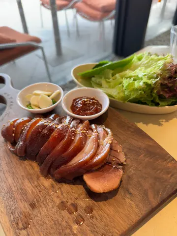 呢晚嚟咗呢间喺长沙湾海旁嘅新派韩国菜🇰🇷餐厅食晚餐🤣$148「韩式猪手(半份)」:半分猪手🐷🖐️已经份量颇多,猪手切片大大件,猪手肉软熟得嚟有少少结实,猪手皮够烟韧仲感觉充满骨胶原🤣,配埋青辣椒生蒜头韩国面豉酱,再用蔬菜叶包住嚟食,几有韩国🇰🇷风味🤩$115「韩式烤牛肉奶油意粉」:牛肉切薄片肉质软熟,奶油酱汁味道浓郁,要嚟捞意粉食出奇地美味🤣$138「鸡蛋🥚多过饭的蛋饭卷」:真系鸡蛋多过饭㖞🤩,配埋啲素菜例如红萝卜丝🥕青瓜丝🥒等,清新几好味🤣$58「带点惊喜的香印提子奶盖绿茶」:叫咗少甜,不过都非常够甜,饮得人好开心🤣,仲有啲香印提子同埋同香印提子一样绿绿哋色嘅啫喱可以食🤩$58「饮完唔会手指指饼咖啡(冻)」:有淡淡嘅咖啡香味,再加一条超级甜嘅手指饼干,食得人好开心🤣$138「开唔开心试咗先知嘅开心果蜜糖窝夫」:卖相靓靓,有脆脆哋嘅开心果粒、够晒 creamy 嘅开心果芝士蛋糕、白雪雪滑脱脱嘅鲜忌廉、脆卜卜嘅焦糖脆饼,窝夫🧇就唔系好甜,整体配合得几好食,兼且竟然每食一啖都开心咗啲啲,原来传说中食开心果会令人开心可能系真嘅🤣餐厅依家做紧【一匙即中 $3000旅游礼劵】推广游戏,消费满 $500 获得1条锁匙满 $1000有2条如此类推,然后用锁匙开宝箱开到就赢奖品大概系咁样嘅游戏钟意玩就可以玩吓🤣…查看更多