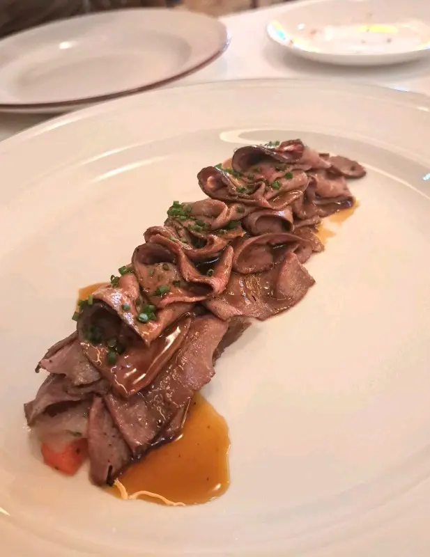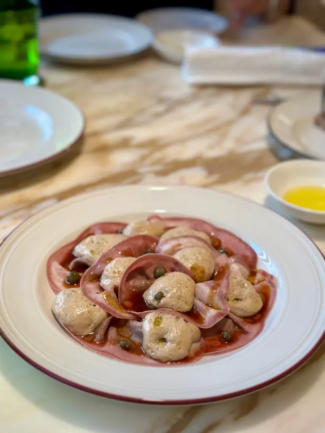 一直都好想嚟食呢間餐廳終於趁佢執之前試一次😅 裝潢有種意大利懷舊嘅味道唔會太過花巧好貼地既感覺🏠 一直無黎食係因為對佢唔少嘅食材有內臟有一點卻步🫀食完覺得佢嘅調味同手法都好出色特色得黎完全沒有內臟嘅怪味❤️以唔係主打精緻米蘭小餐館嘅定位嚟講價錢稍高🥹但係味道食得出係出色的😜⭐️ Blood Orange Carpaccio, Whipped Ricotta, Sicilian Anchovies & Fennel 🍊橙肉嘅甜配上Ricotta Cheese既鹹香好平衡🧀 Anchovies點提帶出意大利獨特嘅風味🐟可惜當日用上普通橙而非血橙賣相同埋風味都打咗折扣😪⭐️ "Trippa Fritta" Fried Honeycomb Beef Tripe & Rosemary 🍖牛肚炸得酥脆沒有內臟嘅腥味🔥好有意大利地道街頭小食嘅風味🇮🇹⭐️ "Lingua Tonnata" Milk-Fed Veal Tongue, Tonnata Sauce, Sicilian Capers 👅又係另一道經典嘅菜色🥰 小牛舌嘅軟嫩度值得一讚🐮配上吞拿魚醬嘅鮮味樸實但係有層次🐠⭐️ Homemade Cavatelli, Sicilian Red Prawns, Fish Broth, Tomatoes & Amalfi Lemon Zest 🍲自製嘅Cavatelli口感特別有咬口👍🏻 配上魚湯濃郁得嚟好有海洋既感覺🌊 可惜唔係好突出到西西里紅蝦嘅既精華🦐⭐️ Homemade Tagliatelle with Duck Ragu 🦆用上鴨肉做成Ragu口味更加濃郁香氣更加獨特😗Tagliatalle掛汁能力一流可以沾盡肉醬的風味🤪⭐️ Roasted Mediterranean Octopus, Capers & Dry Tomato Oil, Romesco Sauce 🐙八爪魚熟度烹調得啱啱好肉質新鮮彈牙💙Romesco Sauce既調味同樣係保守嘅配對🍅 好味穩陣但係比起Pasta同Antipasti稍欠亮點🙂⭐️ Tiramisu 🍰最經典嘅意式甜品有家庭味既Rustic感覺🇮🇹 咖啡味同Mascarpone Cheese既口感好平衡🍦Creamy既幼滑感係圓滿既感覺…查看更多
