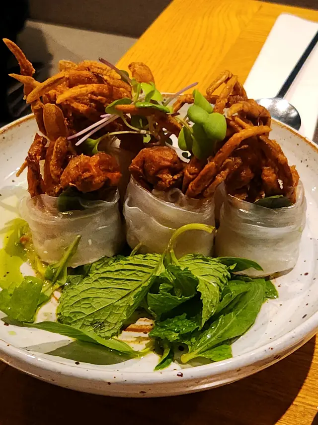 Soft shell crab rice roll, Pad Thai, Pork Jowl