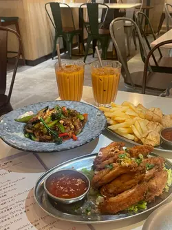 上次与朋友在<Thai-ger>泰国菜餐厅享用晚餐,点了Thai-ger小食拼盘和泰式椰子鸡汤金边粉配去骨海南鸡,两个菜式都很好吃,留下深刻印象。在荔枝角工作的朋友想吃泰国菜,便带她到这间餐厅一同吃晚饭。进入餐厅已有数枱食客正在享用晚餐,我们看看餐牌,点了泰式青木瓜鲜虾沙律、金黄蒜蓉包(6件)、香辣醉猫炒水晶河粉(鸡肉)和泰式青柠檬梳打。泰式青木瓜鲜虾沙律(少辣)~泰式青木瓜鲜虾沙律份量充足,有青木瓜丝、红萝卜丝、车厘茄、花生,还有主角三只爽口又弹牙的鲜虾,口感丰富。酸中带点少辣,特别醒胃。金黄蒜蓉包(6件)~金黄厚切的蒜蓉包俨如金砖,一件件叠起,外卖非常吸引。外层脆脆,内里松软。蒜蓉牛油香气,简直令人食指大动,朋友吃得津津有味。她感觉厨师的用心制作,欣赏蒜蓉包上的新鲜蒜蓉粒,还洒上不少香草,甚为惹味。香辣醉猫炒水晶河粉(鸡肉)(少辣)~晶莹通透的水晶河粉,口感软糯有弹性,既干身,又不油腻。腌制后的鸡肉带点甜味,加入辣椒、新鲜胡椒,甜中带微辣,非常好吃。除了河粉沾满香浓酱汁,连配料介兰和蛋都有著香甜辣味。泰式青柠梳打(走冰和少甜)~这杯泰式梳打,有两颗青柠,酸味十足,既解辣又解渴。…查看更多