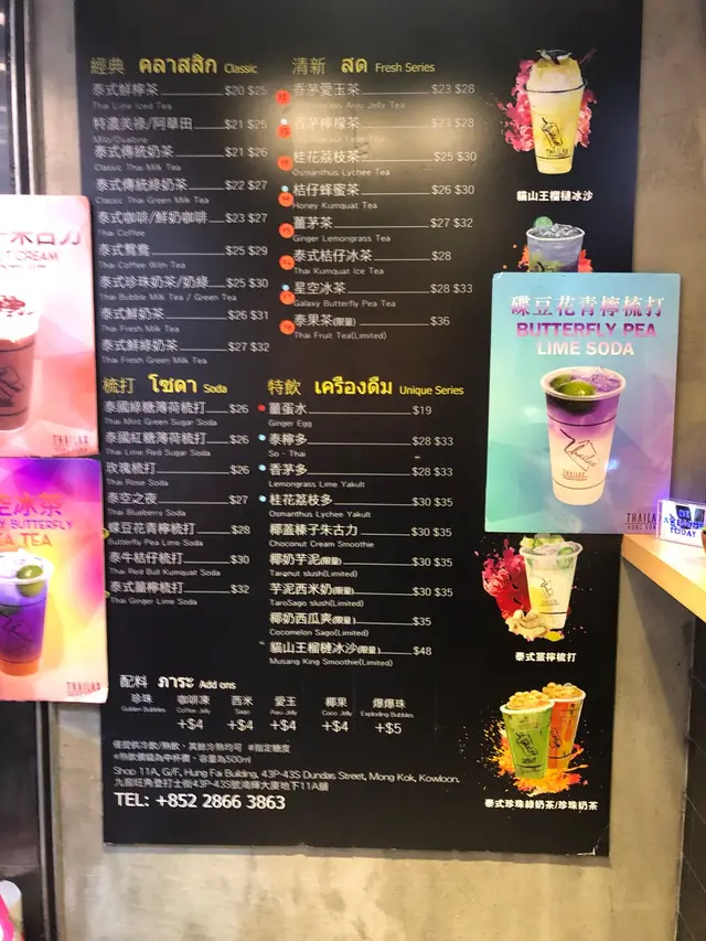 呢間喺登打士街嘅泰式飲品,真係太有特色啦,令到我爭啲中伏啊!🤪⁣⁣⁣⁣⁣香茅多 [好飲度:6/10] ($29) ⁣⁣⁣⁣其實呢個,我諗都算係menu入面睇落最少伏嘅產品。😇 咁的確,佢個香茅個糖漿呢,係幾有香茅嘅香味,而且個甜味好獨特,溝落個益力多度其實都幾夾。😛 但係個益力多真係溝到好稀,溶少少冰就開始無味,幾難收貨⁣⁣⁣。😣⁣⁣⁣⁣⁣泰空之夜 [好飲度:3/10] ($28)⁣⁣⁣⁣伏來了。😖 好方面睇,杯嘢睇落幾靚嘅,可以打卡。🤩 但係要飲就不了,其實我飲咗成杯,我都飲唔出嚟嗰啲係咩糖漿嚟㗎。😱 最後睇返英文menu,先知原來係藍莓嚟㗎喎。😨 我就懷疑佢就落得唔夠多糖漿嘞。😤 公道講句,我見到佢真係直接由成個勝獅玻璃樽倒啲梳打水出嚟,都幾揼本😌 不過整體,我覺得啲糖漿呢就唔襯個梳打水呀⁣⁣嘞。😐⁣⁣⁣⁣⁣鍾意飲泰國嘢嘅朋友先試下啦, 佢個定價高之餘都幾細杯。😅⁣查看更多
