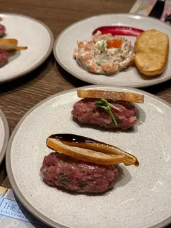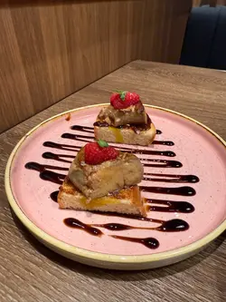 位於黃埔海濱長廊附近的西班牙餐廳。這間餐廳是我這個九龍人除尖沙咀海景餐廳外,最常回訪的地點之一。地理位置方便,環境相對寧靜,人流不多;若想悠閒地與好友聊天,不用擔心被餐廳催促離座,這裡絕對是個好選擇。.餐廳的戶外座位遠比室內更吸引,海景近在咫尺;中秋過後的夜晚,皎潔月光搭配陣陣海風,氣溫舒適不悶熱,於是決定頂著被吹得像瘋婆般凌亂的頭髮,入座露天區。⋆_____ᴛᴀꜱᴛɪɴɢ ᴅɪɴɴᴇʀ ᴍᴇɴᴜ $388/ᴘᴘ______⋆𓇬 ꜱᴛᴀʀᴛᴇʀ (ᴄʜᴏᴏꜱᴇ 2)。西班牙火腿配蕃茄麪包。三文魚他他。法國新鮮生蠔 +$60既然每人可以選兩款,菜單上只有三款,成年人自然就不做選擇,全部都要吧。西班牙火腿配蕃茄麵包是經典ᴛᴀᴘᴀꜱ,伊比利亞火腿薄如蟬翼,油脂散發堅果香氣,搭配酸甜的蕃茄麵包,開胃十足;三文魚他他油脂豐富卻不膩,可惜搭配的麵包稍欠酥脆;生蠔雖不算大,但肉質飽滿滑嫩,入口清爽又帶點奢華感。.𓇬 ʜᴏᴛ ꜱᴛᴀʀᴛᴇʀ (ᴄʜᴏᴏꜱᴇ 2)。西班牙油蒜大蝦。香脆魚柳墨西哥夾餅。香煎鵝肝配牛油包 +$70西班牙油蒜大蝦鮮嫩微辣,蒜片增添濃郁香氣;香脆魚柳墨西哥夾餅融合傳統與創意,魚柳炸得外酥內嫩,搭配酸甜莎莎醬和柔韌夾餅,口感層次分明;鵝肝煎至外層金黃微脆,內裡細膩如奶油,搭配牛油包,堪稱完美。.𓇬 ᴍᴀɪɴ (ᴄʜᴏᴏꜱᴇ 1)。扒比目魚配薯蓉。招牌西班牙乳豬配馬鈴薯 +$40扒比目魚柳煎得外皮微脆,魚肉細嫩潔白,入口鮮甜即化,搭配蒜香草醬,帶來濃郁蒜香與微妙辛香,襯托魚肉風味,綿密溫潤。我最期待的西班牙乳豬份量雖少,但表皮烤得金黃酥脆,肉質柔嫩。.𓇬 ᴅᴇꜱꜱᴇʀᴛ (ᴄʜᴏᴏꜱᴇ 1)。ᴘɪꜱᴛᴀᴄʜɪᴏ ᴄʀᴇᴀᴍ ᴄᴀᴋᴇ。ᴛɪʀᴀᴍɪꜱᴜ開心果忌廉蛋糕鬆軟細膩,甜度適中,可惜開心果香稍欠突出;ᴛɪʀᴀᴍɪꜱᴜ咖啡濃郁撲鼻,糕體濕潤順滑。兩款甜品份量精巧,吃完也毫無負擔呢!..✿ ᴅʀɪɴᴋꜱ: ꜱᴀɴɢʀɪᴀ …查看更多