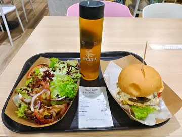 今日又做孤独的美食家,今日唔系好肚饿就想食下汉堡之类既,黎到雅都既food count就有间汉堡专门店就试试啦。先赞一赞收银既女店员服务态度几好,系我望餐牌既期间都好耐心咁介绍边d食品比较热门同埋有咩分别,所以系落单既过程都几流畅同几满意。黑松露芝士牛肉堡由于唔太肚饿就食个浓味d既包,用既系手打牛肉同黑松露芝士酱,汉堡扒煎得够熟之余仲有肉汁,唔会干柴,黑松露芝士酱落得都几多,味道都够浓,配料有d沙律菜同蕃茄丝,都几新鲜,个包就属于松软果种,烘得就无咁香口我觉得就争dd,同埋个包比较细d,就咁食一定唔够,但味道同用料都唔错。炸薯宝跟餐加20蚊就有薯条同汽水,可以转薯宝呢样野有d惊喜因为都断货咁济,以前细个都好钟意食可以话怀旧下,就似系一口炸薯饼,份量都唔孤寒数到有23粒,食汉堡唔够食埋佢就够晒饱,略慊炸过左少少。白桃乌龙冷泡茶唔想饮汽水就加多5蚊转冷泡茶,闻到好轻微既白桃味但饮落就无乜,乌龙茶味都不太浓淡淡地,叫做还可以啦唔想饮咁多汽水既选择。整体黎讲野食都唔错,种类都几多,价钱就同一般既汉堡店差不多啦,系雅都揾野食都可以试下。…查看更多