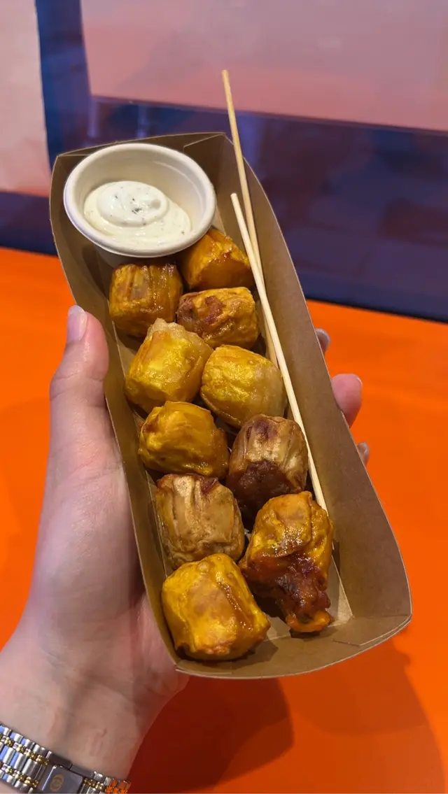 已有半年沒有與舊同事見面,我們相約在啟德站Airside G樓〈The Captain's fish &chip bar〉。在等待同事到來期間,發現很多食客都在等待外賣,買的全是雞蛋仔。難度這間餐廳的招牌菜是雞蛋仔而非炸魚和炸薯條嗎?看看餐牌,一間細小餐廳竟提供多款優質的美食,有主菜、小食和飲品。單單燒賣已經有六款,可炸或蒸,醬汁都有四款。意粉可配雞翼或船長炸魚,飲品有奶茶、果汁和咖啡,還有六款雞蛋仔。我們三人點了:雙皮奶雞蛋仔、奇異果原個檸檬果汁、士多啤梨原個檸檬果汁及金橘熱情果原個檸檬果汁、香菇豬肉燒賣、英倫炸魚配自家製粒粒他他醬、慢煮雞胸意粉 (蕃茄汁) 和炸雞翼意粉(蒜香雞翼)。雙皮奶雞蛋仔~很久沒有吃雞蛋仔,這個雞蛋仔帶給我驚喜,外層熱辣辣又酥脆,內裡有濃郁奶香的雙皮奶餡料,真是很好吃。果然相信排隊的食客是沒有錯的!後來上網搜尋雙皮奶內餡是來自順德民信水牛奶,特別順滑香甜。香菇豬肉燒賣配XO醬~燒賣充滿著香菇粒和豬肉,入口鬆軟彈牙。雖然燒賣不及雞蛋仔驚艷,但是味道也不錯。英倫炸魚配自家製粒粒他他醬~嘩!魚柳粗大如手臂,外層炸得金黃酥脆,朋友主動想吃香脆部分,魚肉肉質仍鮮美滑溜。他他醬果然是自家製,有很多酸黃瓜粒,另一位朋友吃著薯條也常醮這個醬。慢煮雞胸意粉 (蕃茄汁) ~賣相不吸引的雞胸,卻充滿著內涵。經慢煮的雞胸肉,滑溜不「柴、硬和乾」,單吃雞胸肉也不錯,配搭蕃茄汁意粉,微酸又醒胃。炸雞翼意粉(蒜香雞翼)~香脆單骨雞翼份量不少,單吃雞翼也非常香口惹味,選擇了蒜香味,配搭白汁意粉很不錯。值得一提店家使用的意粉是扁而幼的意粉,雖不是手工意粉,但是口感比一般意粉彈牙和好味。奇異果原個檸檬果汁、士多啤梨原個檸檬果汁及金橘熱情果原個檸檬果汁~毎款果汁都冰涼,有著新鮮果肉,吃到奇異果肉、士多啤梨粒和熱情果粒。…查看更多