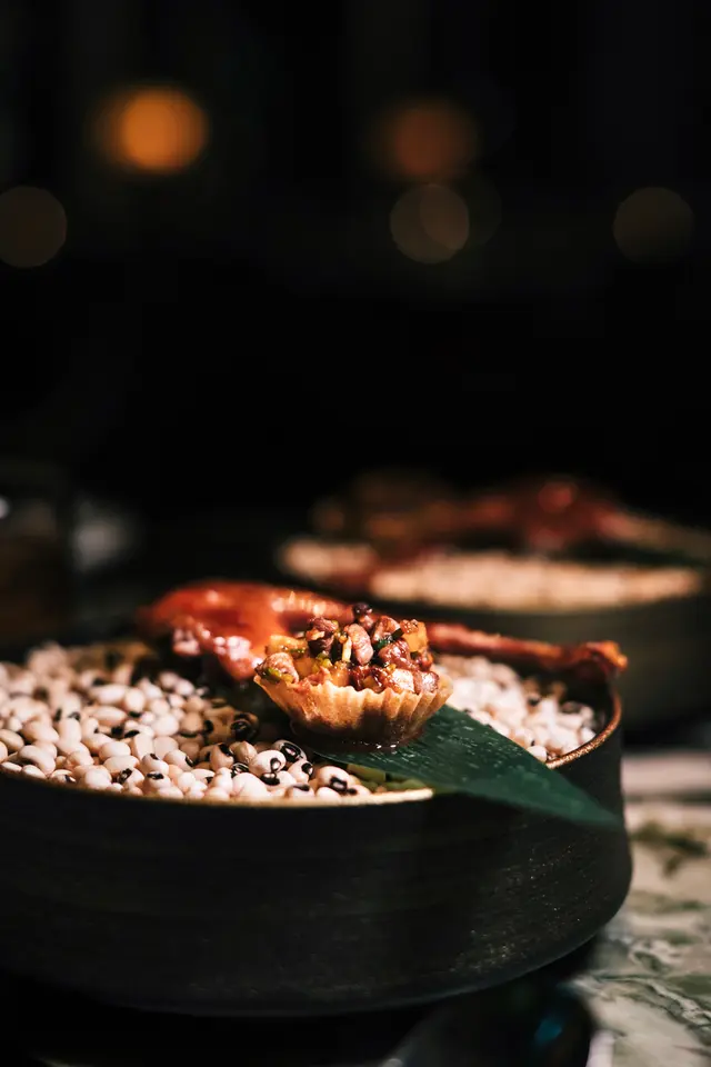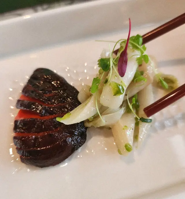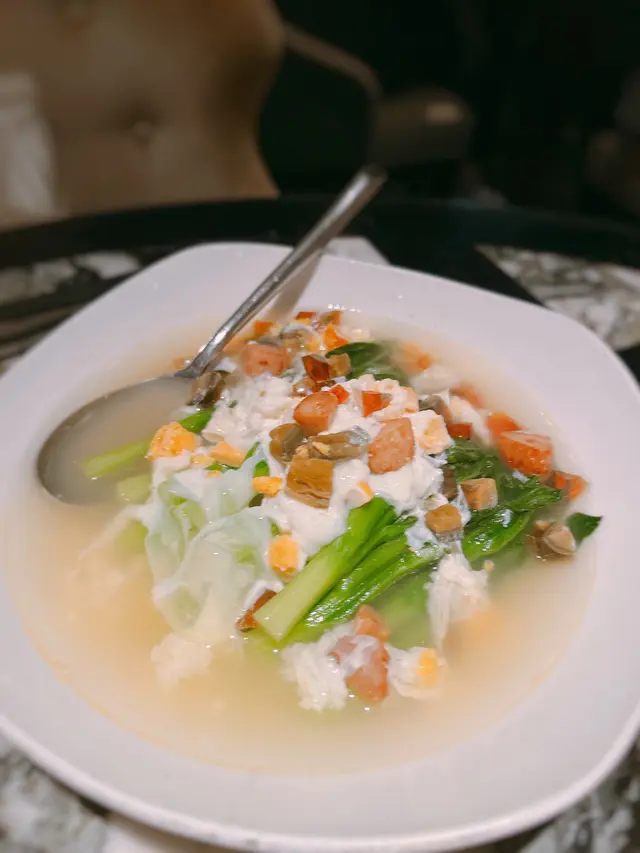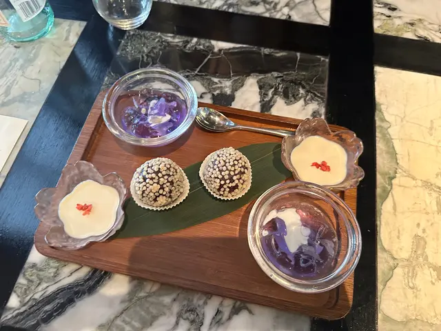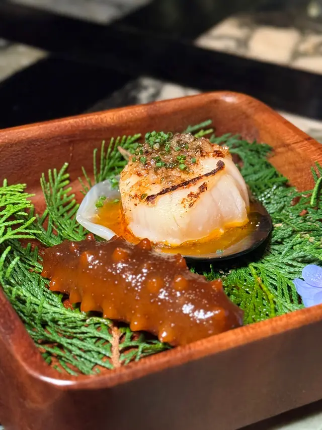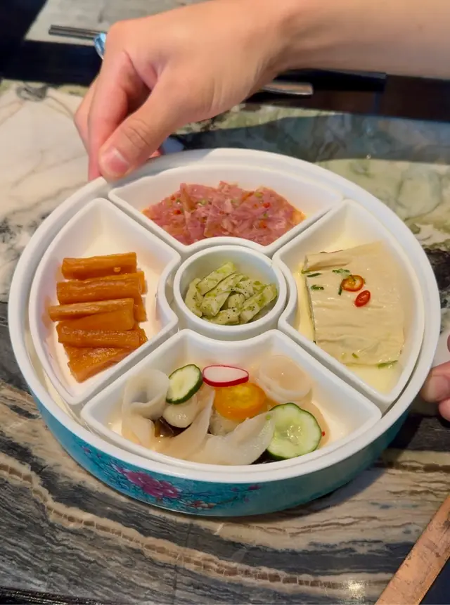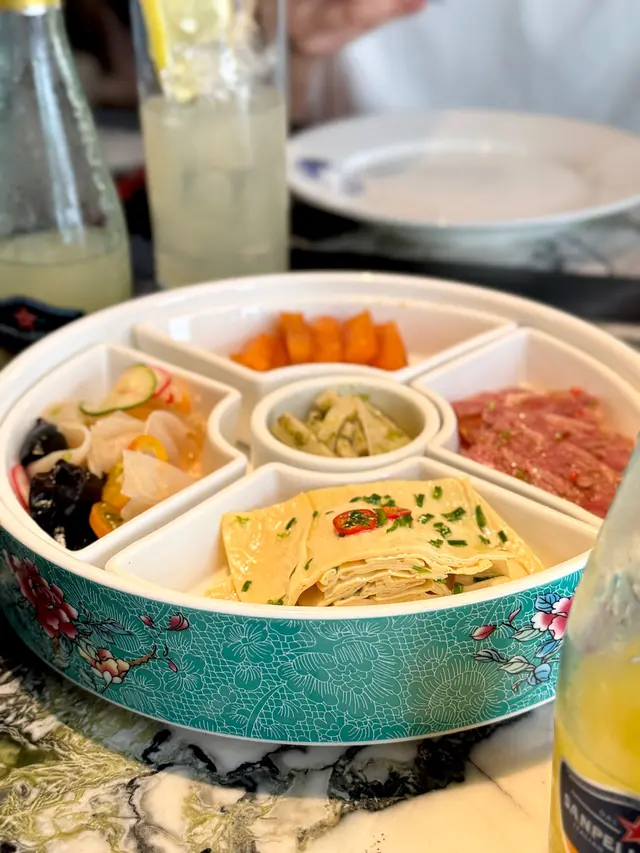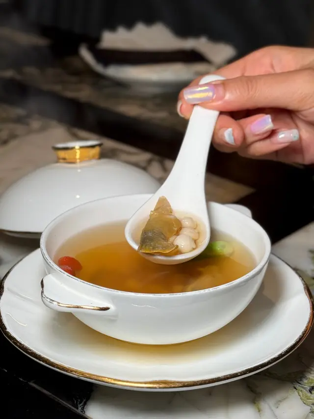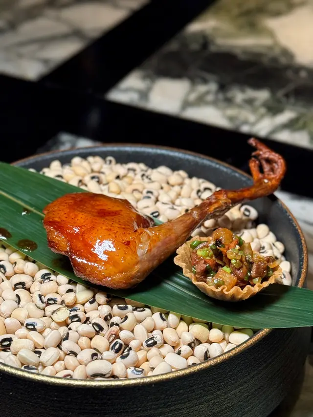 黑蒜燒賣原本唔抱任何期待,但係佢係比平時嘅味道增添左一種發酵嘅微微酸,估唔到又幾match,有新意得來又好味。👌🏼口水石斑腸粉只係非常輕微嘅BB辣,腸粉皮整得煙靭有彈性。不過因為石斑魚味道有啲淡,軟腍腍,同腸粉嘅反差口感唔係太大。有新意味道可以,但又未至於好驚喜。:)喇沙小籠包小籠包裡面有啲喇沙味道,帶d 酸酸辣啦但又唔會太霸道,有陣淡淡嘅東南亞嘅口味。味道OK,有新意得嚟又唔會太怪。👌🏼蟹肉海膽春卷海膽味道OK,唔會有浸up味。春卷都外脆內軟,味道唔錯。但係兩件事夾埋,又唔係話好有火花。:)黑松露蝦餃有黑松露嘅味道,味道唔錯。:(和牛酥皮卷好似蘿蔔絲酥卷,但入邊冇和牛嘅感覺。就係一啲醬汁嘅味道再有d 肉粒。普通。:)美祿糯米糍糯米糍外層煙靭,有啲厚度。入邊一啲流心嘅美祿朱古力汁。味道唔錯,頗甜。總結係無論想招呼朋友家人或者商務晏客,既要環境靚又要食物唔錯,呢到都係好選擇。但係如果好執着要傳統酒樓口味就要考慮。…查看更多