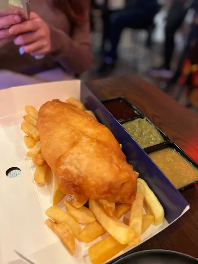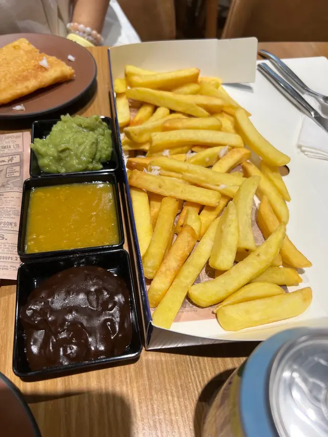 滿心歡喜,去試下呢間講到好食到不得了,size又超大嘅Fish snd Chips. .點知。。。去左平行宇宙咁。.1. Full size 既薯條魚,魚超細,無炸漿咁(看圖)燶、硬、柴、切唔開(幾乎).2. 薯條一半係頭頭尾尾(看圖).3. 咖喱汁,成$30(細size),又鹹又杰,完全5得(看圖).4. 個Tartar sauce要加十元🤦🏻♂️🤦🏻♂️🤦🏻♂️,乜食fish and chip 唔係预左要比嘅咩?.食左$280。超不值。食左一半都掉低。回頭?咪玩啦😂😂😂😂.…查看更多