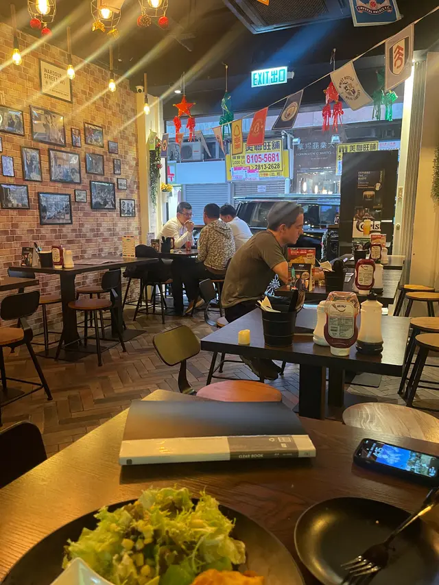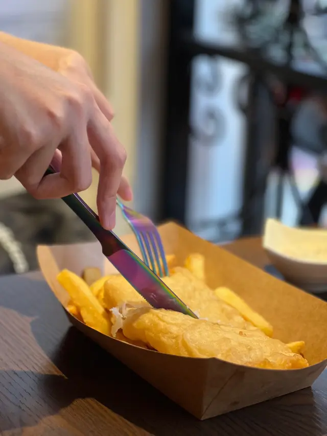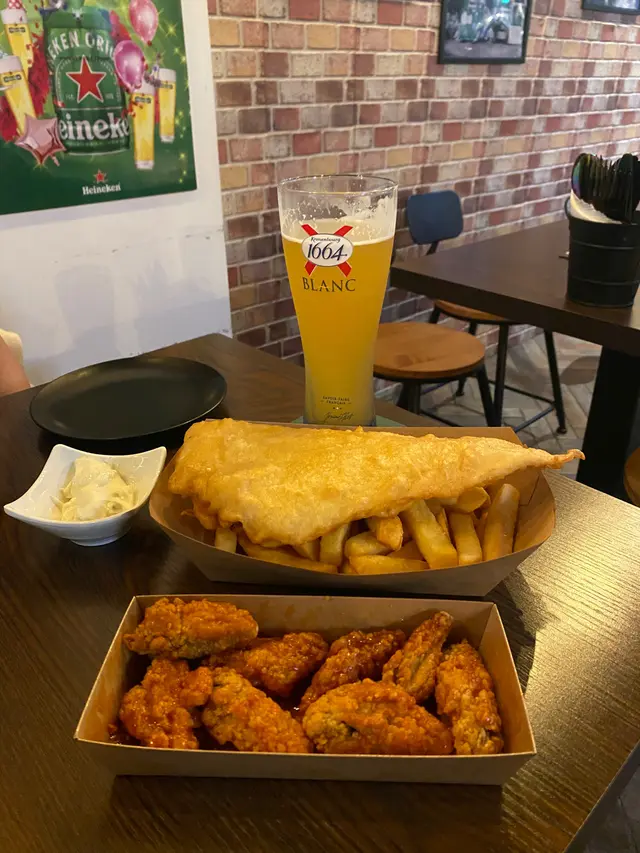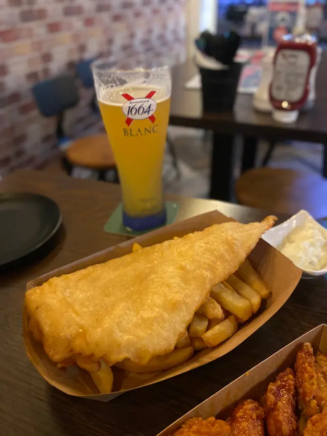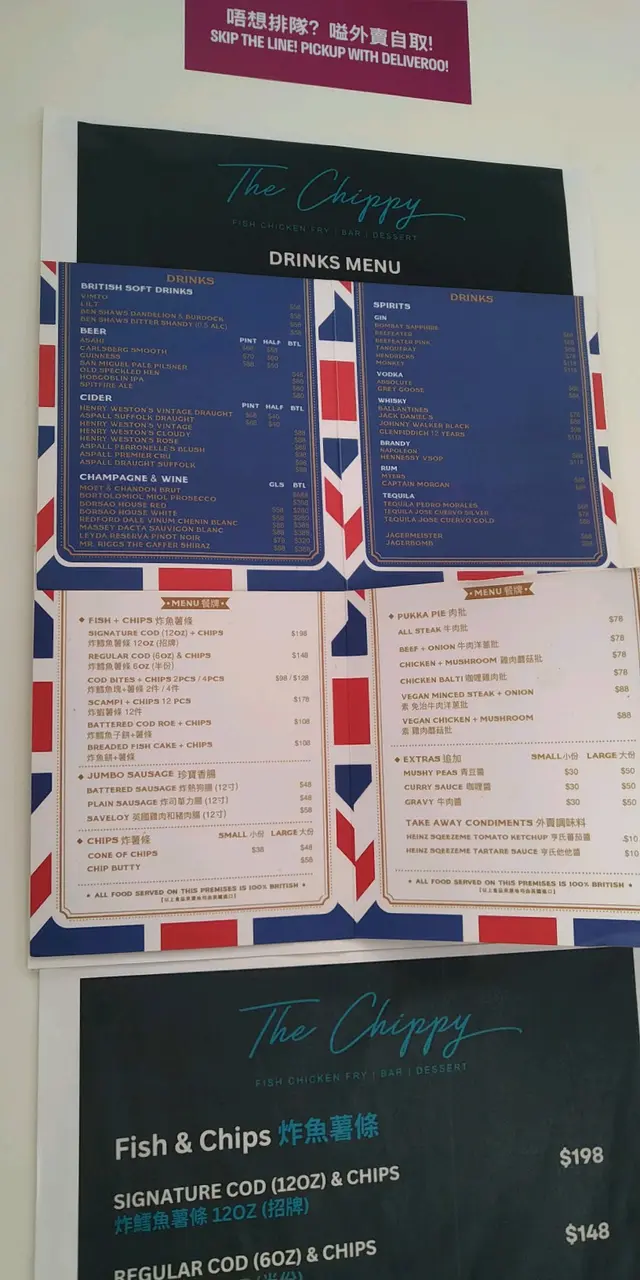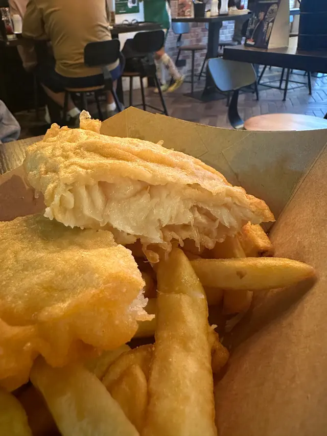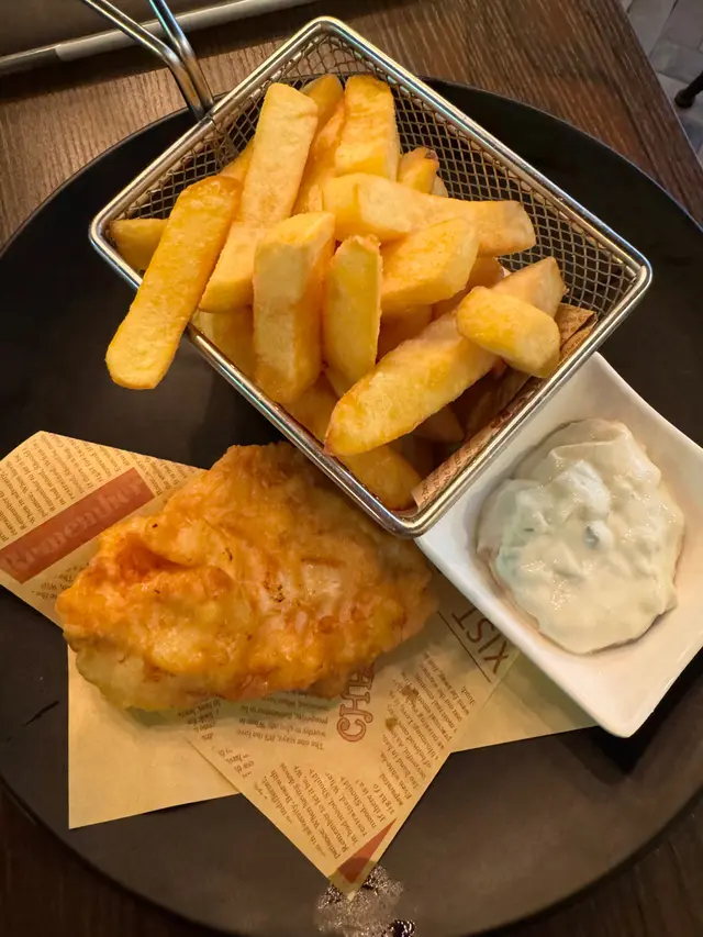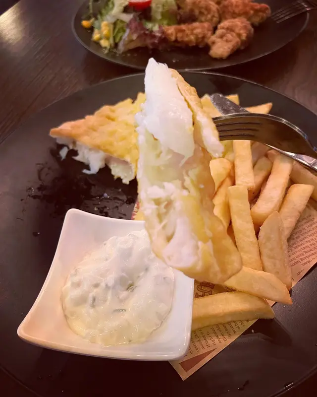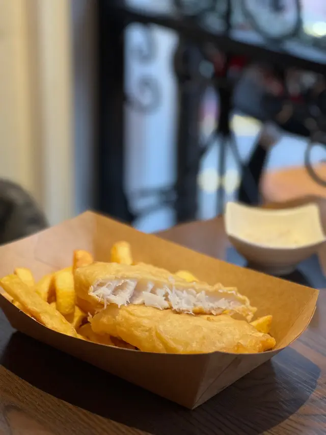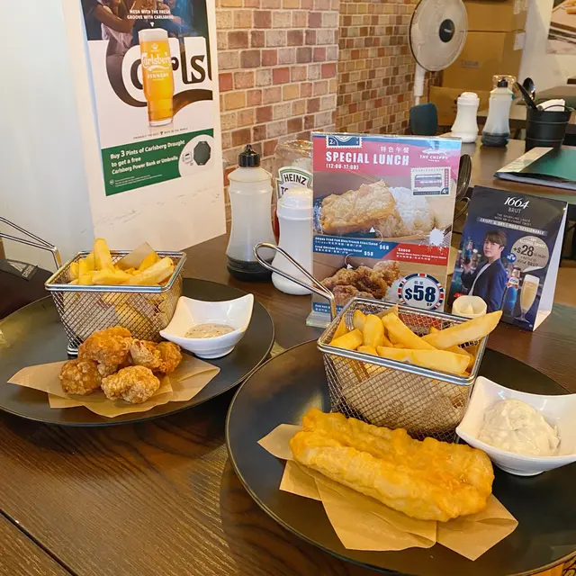 要搵到好食嘅Fish n chips一係貴,一係就唔正宗。之前喺網上睇過佢地嘅介紹,加上友伴食過話好味所以果日經過就黎。一入到去好靜,睇中佢可以暢所欲言。友伴留意到個餐牌唔同左,佢地想飲嘅酒基本上都無,最後叫左cider. 講返食物,因為我地坐可以直接見到廚房嘅枱,侍應落完order 化身廚司,我地叫左3樣野: fish n chips, mince pie , scampi. 炸魚有啲腥但係可以接受,薯條唔熱, gravy 一食就知用一粒粒果啲湯粒去整成,但又加唔夠水去煮,結果成件事就係一個字:鹹。 其餘兩樣食物好有雪藏味,應該係攞貨嘅,炸返熱焗翻熱俾你食。雖然我唔會再光顧佢哋嘅食物,但係有得睇波,嚟呢度飲嘢都係好嘅選擇。…查看更多