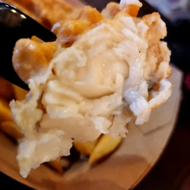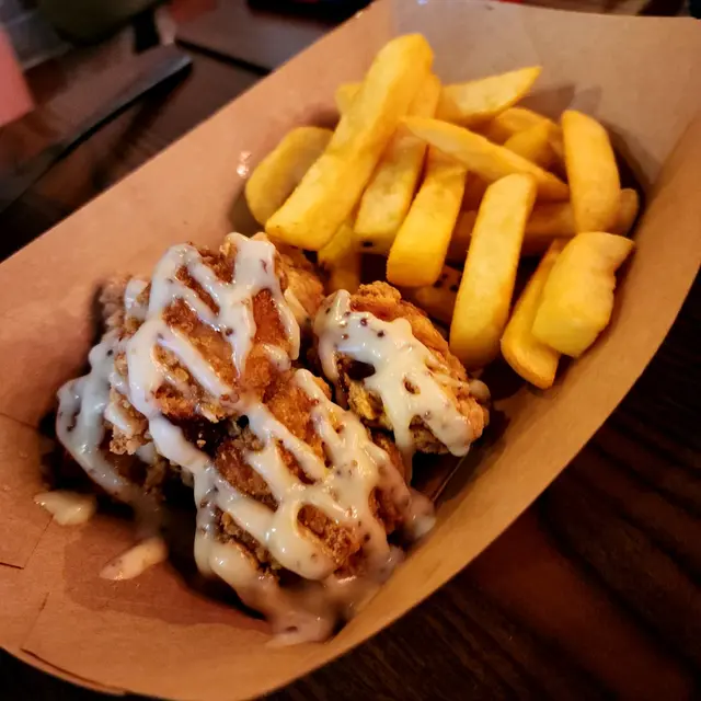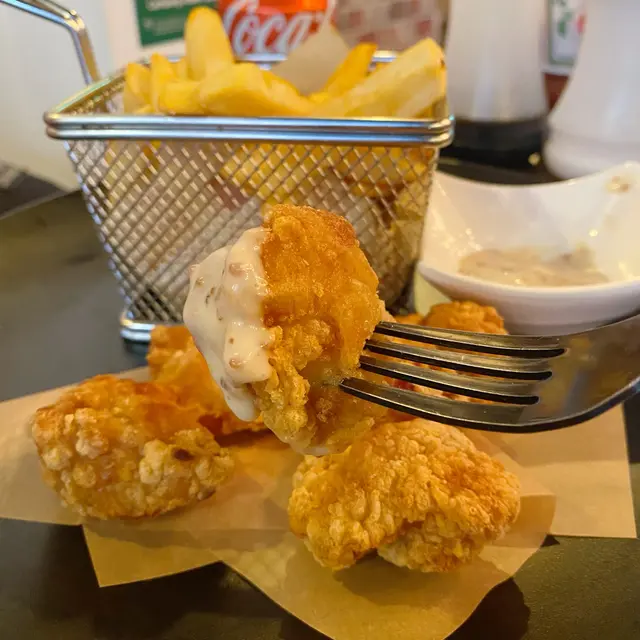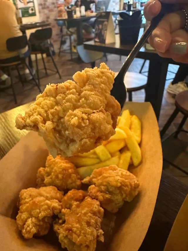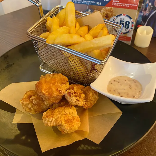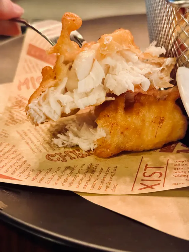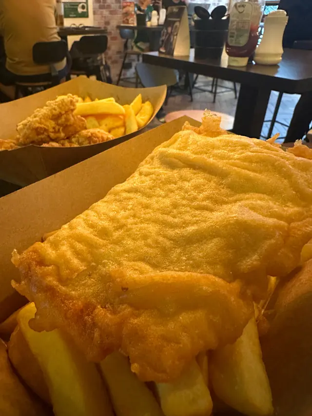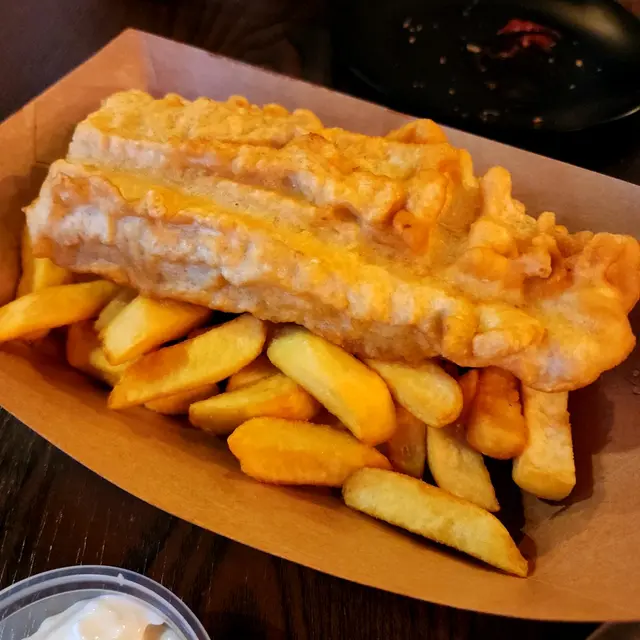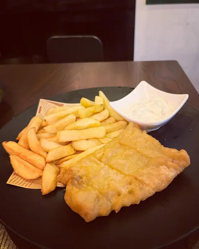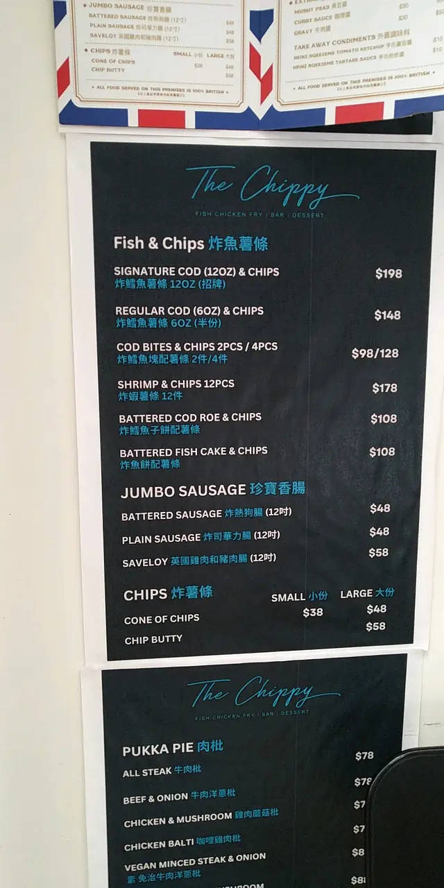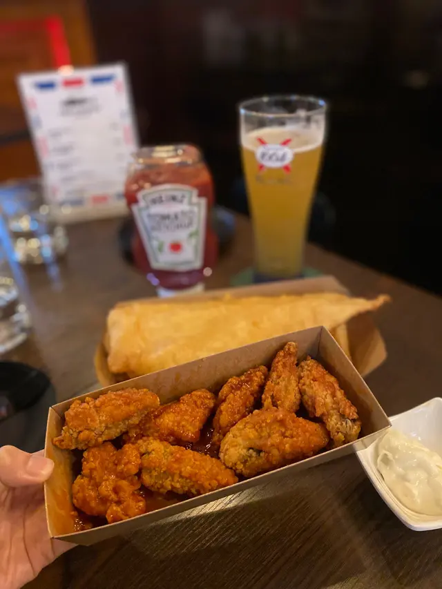 要搵到好食嘅Fish n chips一係貴,一係就唔正宗。之前喺網上睇過佢地嘅介紹,加上友伴食過話好味所以果日經過就黎。一入到去好靜,睇中佢可以暢所欲言。友伴留意到個餐牌唔同左,佢地想飲嘅酒基本上都無,最後叫左cider. 講返食物,因為我地坐可以直接見到廚房嘅枱,侍應落完order 化身廚司,我地叫左3樣野: fish n chips, mince pie , scampi. 炸魚有啲腥但係可以接受,薯條唔熱, gravy 一食就知用一粒粒果啲湯粒去整成,但又加唔夠水去煮,結果成件事就係一個字:鹹。 其餘兩樣食物好有雪藏味,應該係攞貨嘅,炸返熱焗翻熱俾你食。雖然我唔會再光顧佢哋嘅食物,但係有得睇波,嚟呢度飲嘢都係好嘅選擇。…查看更多
