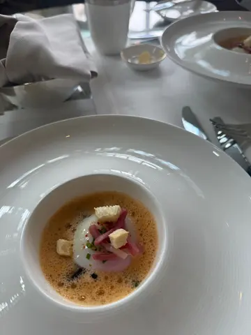 预约困难店之一既The Drawing Room,位于St. Regis酒店既2楼,环境高雅,落地玻璃窗同高楼底设计好有气派,气氛浪漫又chill!人气Afternoon Tea下午茶会由职员推架车到你面前,每人可以喺16款咸甜点入面拣8款,就连茶叶都有12款逐款介绍俾你慢慢拣。下昼5:30仲可以睇埋香槟刀削仪式,仲会有杯免费香槟俾在场人士品尝,仪式感满满🥰🍽️Foie Gras Rose鹅肝化咗似奶油,配玫瑰香气,入口滑溜又有层次🍽️Tonburi Tart松子草微苦同酥脆tart混搭,清新又特别,食落真系唔错!🍽️Smoked Salmon Sphere烟三文鱼球形靓到爆,内里juicy配柚子醋,推介!🍽️Wagyu Beef Carpaccio和牛薄切嫩到即溶,配橄榄油同火箭菜,浓郁又唔腻🍽️Argentina Gamba阿根廷虾大只新鲜,烤得香脆,蒜香酱汁一流!🍽️Jasmine Tea St. Regis Cake茉莉花茶蛋糕香气扑鼻,轻盈唔死甜,瑞吉招牌甜点,必拣!🍽️Hojicha Madeleine焙茶玛德莲香浓软嫩,焦香扑鼻,配茶一流!🍽️Pistachio Canelé开心果Canelé外脆内软,焦糖同开心果香气混搭,甜度啱啱好,完美收尾!🍽️Scones松饼新鲜出炉,配clotted cream同三款果酱,香甜软滑,上枱果时仲系微暖外皮香脆!