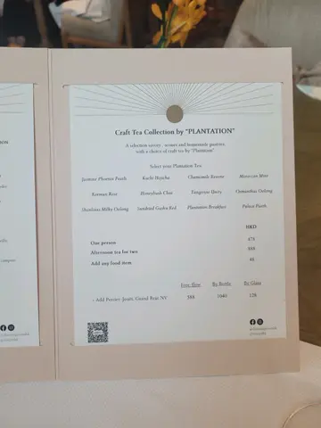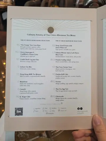 香港数一数二难预约的Afternoon Tea🫖提早一个月预约了St. Regis香港与x St. Regis曼谷 合作推出的Culinary Artistry of Two Cities Afternoon Tea”🎀A selection of 8 preferred savory and sweet items with craft tea by "Plantation” 自选8款咸甜点✿ Hong Kong Selection ✿咸点有煎堆、龙虾烧卖等;甜点有奶茶慕斯、花生慕斯、玛德莲、可丽露等✨-✿ Bangkok Selection ✿咸食有吞拿他他、柚子扇贝沙律、酸梅虎虾等;甜点有斑兰卷、芒果西米布丁、泰式奶茶挞等✨-下午茶采用餐车形式,自由从共16款咸甜点中挑选自己喜欢的8款☺️个人最喜欢香港的St. Regis Cake(花生酱mousse内有芝麻馅)🤤以及曼谷selection的泰式奶茶挞,泰奶味甚浓,非常有记忆点!✿ Freshly-baked Scones ✿Scones除配上传统的clotted cream和whipped butter外🧈每台还配有Honey🍯以及3款果酱,包括strawberry jam, orange jam, fig jam🍓🍊🫖Craft Tea Collection by "Plantation"逐一向你介绍12款茶叶,让你从中挑选✨我和朋友都选择无咖啡因的茶:Dattan Sobacha(荞麦茶) & Chamomile Reverie(洋甘菊)🌼The Drawing Room环境较典雅,空感感十足;17:30还可以观赏Champagne仪式🥂是值得体验的一次香港5星级酒店Afternoon Tea🤩…查看更多