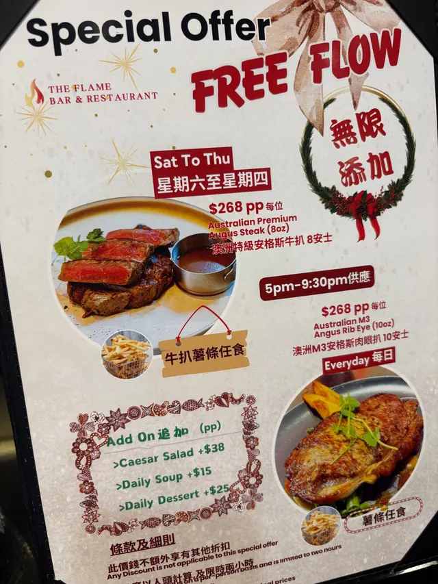 The Flame Bar & Restaurant (观塘) 网上订位享低至7折优惠并赚Rice Dollars 网址: https://s.openrice.com/QrLS0MQ8B00 地址: 香港觀塘觀塘道414號1亞太中心3樓303號舖 电话: +852 92329838