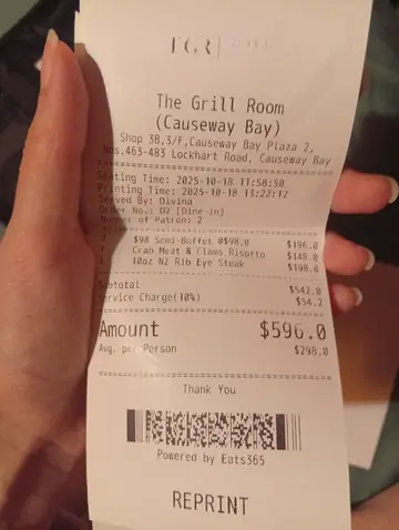 📍「The Grill Room」- 尖沙咀今次食食食之旅黎到尖沙咀😌听讲呢间嘅牛几出名,就决定同👦🏻试吓个晚餐😎🍴炭烧美国16ozUSDA安格斯肉眼牛扒💰HK$488✨推荐指数:7.5/10Steak 系呢间餐厅嘅signature,又点可以错过呢~今次嗌咗medium-rare ,外层烤过带点炭香味,切开里面呈鲜嫩粉红色,卖相几吸引😍😍😍食落牛味几香浓,肉质唔鞋亦几腍,脂肪部位比较多,所以食落比较腻,岩同朋友一齐share🤡今次拣咁牛肉原汁,唔会太咸,点埋食会更juicy 😆伴碟拣咗法式薯蓉,口感好creamy,几好!整体份量都几大份,但偏肥腻,岩哂中意食啲脂肪比例比较重嘅牛魔王😈🍴烩蕃茄牛面肉扁意大利面💰HK$168✨推荐指数:8.5/10呢款超有惊喜!牛面颊肉非常腍身,有入口即化开嘅感觉,而且好入味,呢款牛比上一款出色🤣酱汁充满浓浓嘅酸翻蕃茄味,而意粉非常挂汁,口感烟韧,整体配搭得好好,必嗌😋…查看更多