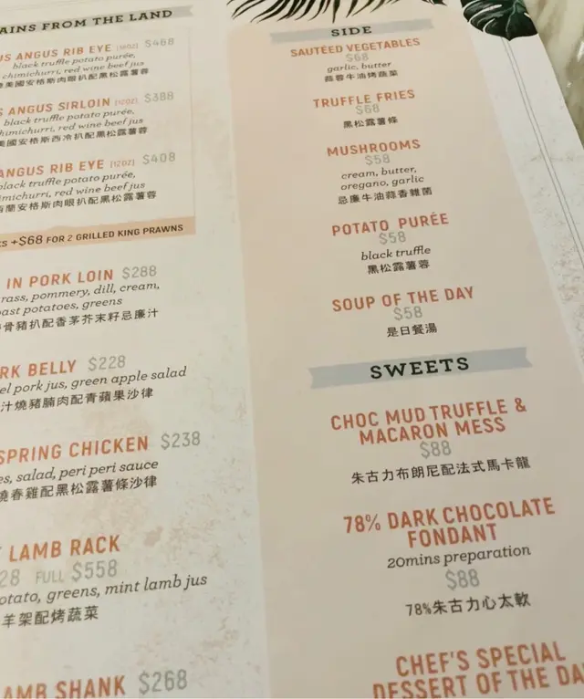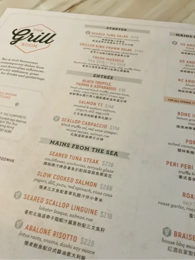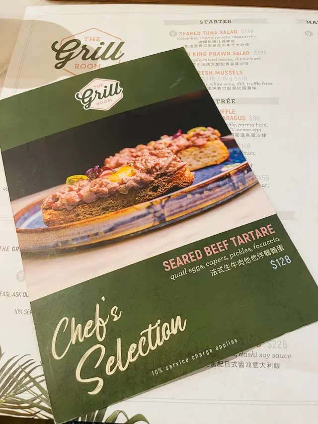 经E字头APP订枱,可享主餐牌5折优惠。虽然优惠只做到晚上5点半,不过对于中意早食DINNER嘅我嚟讲,完全乎合我要求!! 🤤星期一晚上未够5点半嚟到,成为全场第一枱客人。入座后,职员悉心介绍餐牌,完全无因为半价而变得唔友善,赞!!👍主餐牌中只有NZ Angus Rib Eye $408同马卡龙$88无折外,其他都有半价。餐厅叫得Grill Room,当然最有信心就系Grill嘅食物啦!! 所以我地点左