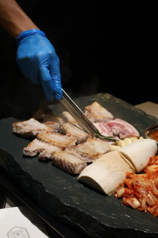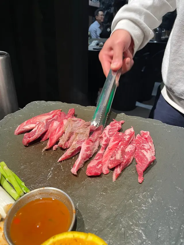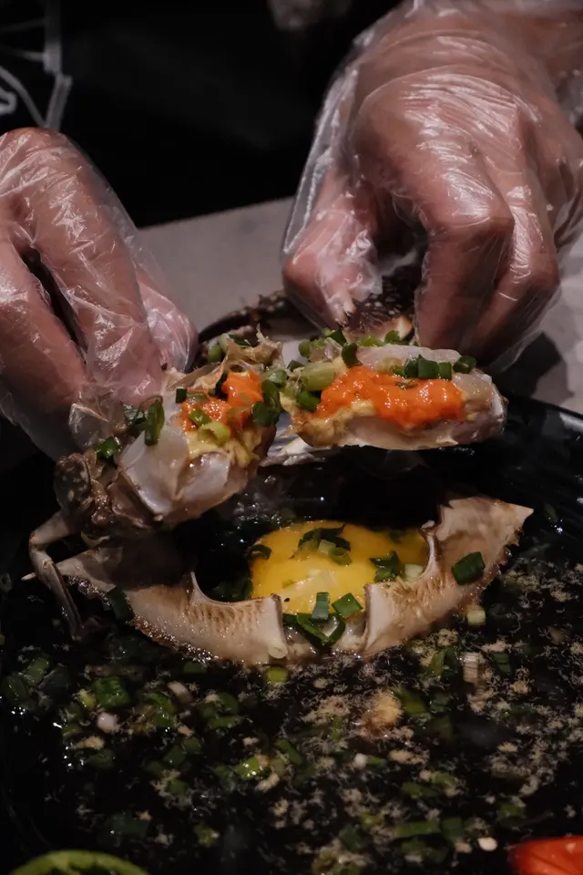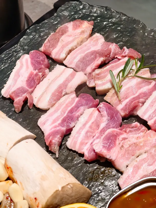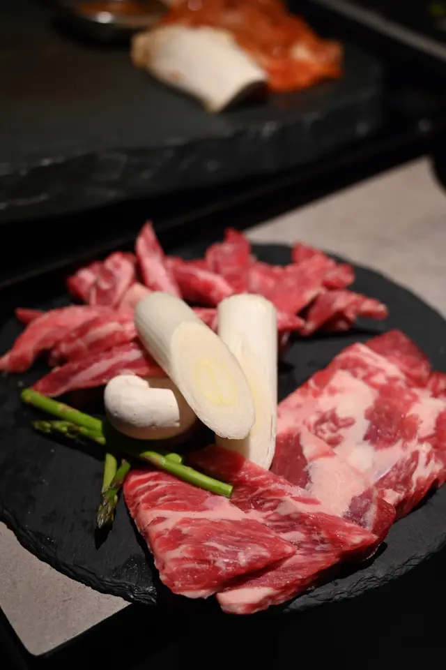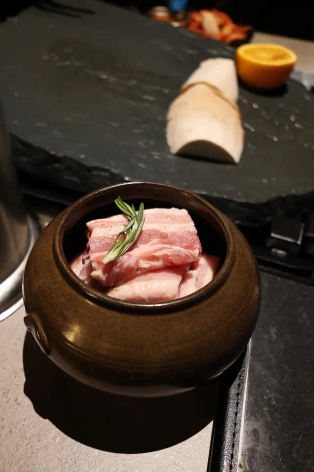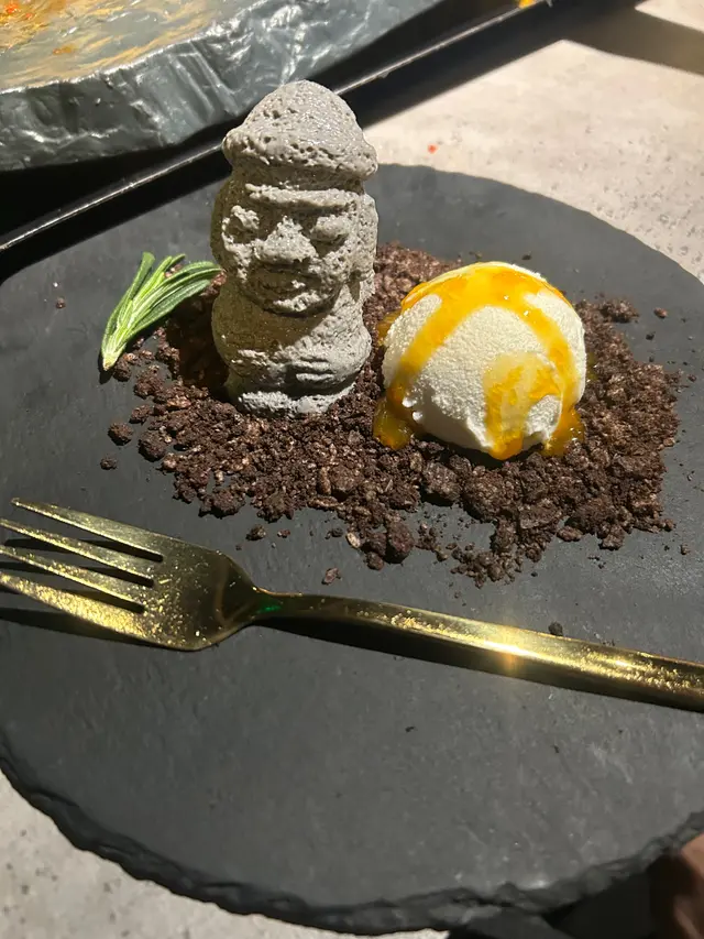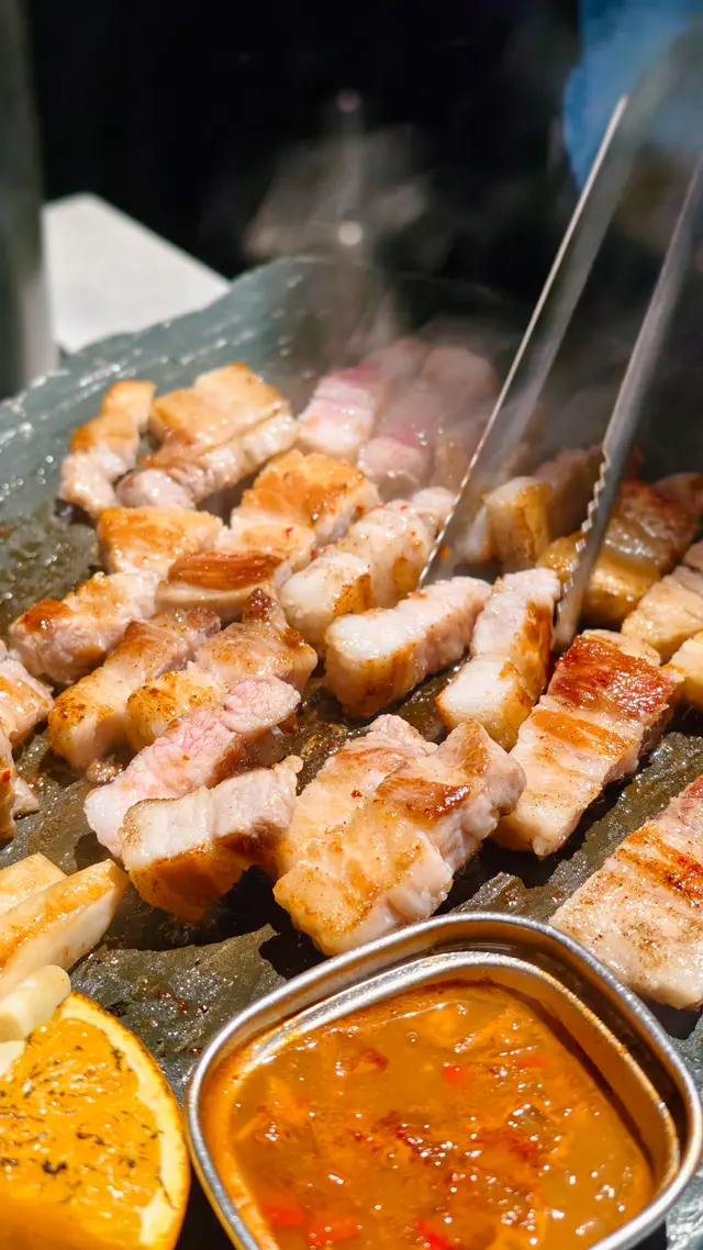 近期旺角有一間人氣大熱既濟州燒肉,超火熱又得意, 所以我都湊熱鬧立即約朋友去食~餐廳以仿傚濟州玄武岩洞穴為裝修主題,牆身是深色石材牆, 好似火山岩石般,帶點神秘及型格感覺,餐廳全部由韓國人主理,店員都是韓國人,好有feel~當晚好多人慶祝生日,店員都超high 幫手慶祝, 好好氣氛🥳餐廳用上由韓國定製的火山石烤盤嚟烤肉,受熱更加均勻,更能鎖住肉汁,餐廳烤肉工作全部由店員處理,可以安坐座位中開心吃肉肉, 超開心~🥳🌟牛肉套餐B (牛肋骨肉+牛板腱肉+炒飯)($696)每枱都會送上前菜6款,當中仲有魷魚漬,超好味。朋友想食牛肉,所以就揀咗牛肉套餐B,包括牛肋骨肉200g及牛板腱肉100g。牛肋骨肉肉味濃郁,較有口感,而牛板腱肉則較軟淋,2款都好唔錯。套餐仲可以選炒飯或炸醬拉麵,我地就揀咗炒飯,經過火山石烤盤炒過,再加上芝士及煎蛋,炒飯口感更豐富,亦更惹味。 燒烤的配菜都好豐富,包括泡菜,雞髀菇及濟州柑橘,特別一讚濟州柑橘,烤過的濟州柑橘清甜無渣,食烤肉時解膩一流💫🌟醬油蟹($318)見到有醬油蟹,忍唔住叫咗一隻。醬油蟹好多蟹膏,再加上淡淡的醬油香,不會死鹹,鮮味好食,配上紫菜飯同吃,真係超正!🌟甜品:Jeju Yeah Yeah ($70)最後當然要食埋甜品先完滿啦,濟州島石爺做型的芝麻奶凍,可愛又香濃,內裏仲包住蜜柑,帶水果香甜,配上Oreo碎及雲呢拿雪糕,味道唔錯👍🏻🌟飲品:士多啤梨米酒|哈拉邦米酒 ($68@)好鍾意韓國的米酒, 米味香甜, 酒味又不會太濃, 所以點了2杯水果口味的米酒,哈拉邦即是濟州的橘子, 加入米酒裏, 清爽清甜, 而士多啤梨米酒則多了一份香甜, 2款都很不錯😋…查看更多