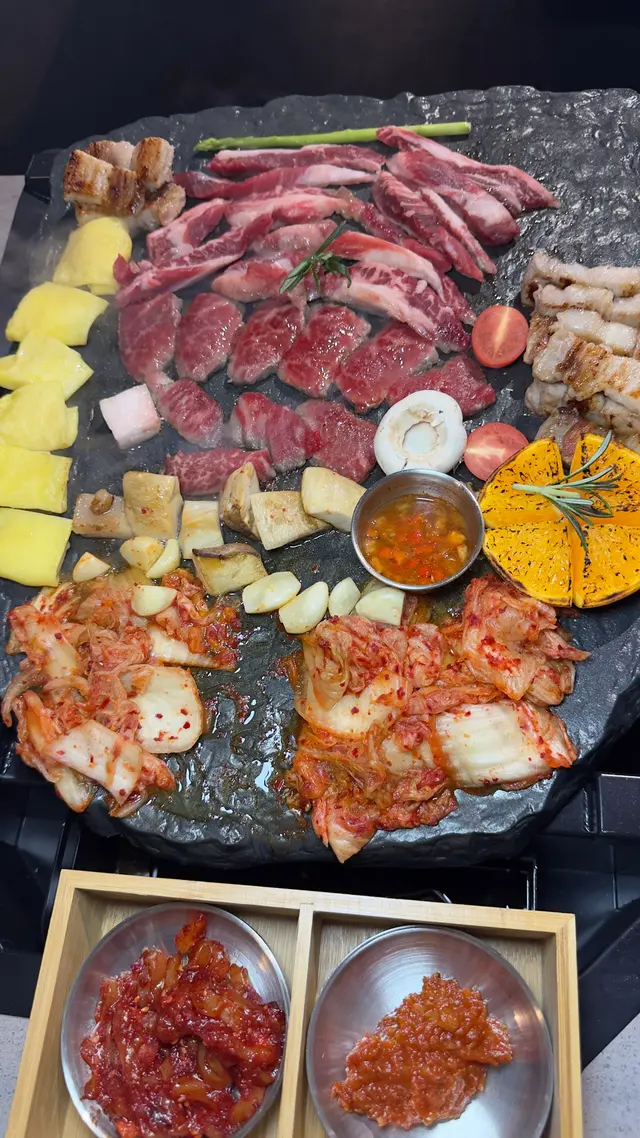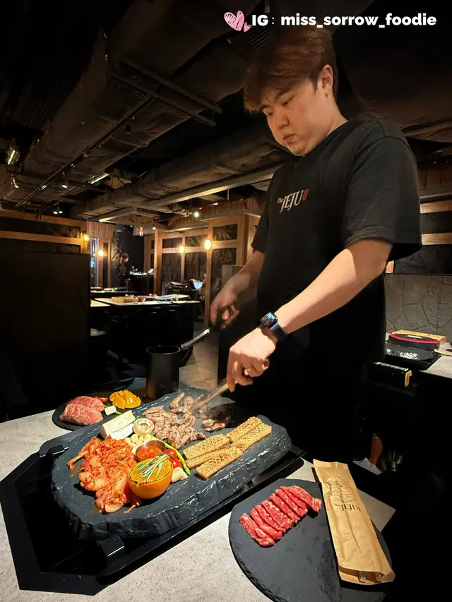銅鑼灣濟州風情韓燒!罈子五花肉+芒果牛舌超惹味韓燒控注意!韓國人主理「The JEJU」而家銅鑼灣有得食喇!環境充滿濟州島休閒風情,主打地道韓式燒肉同創意菜式,鍾意韓食嘅記得要book定位~🐷A set 罈子五花肉$338濟州直送低溫屬性黑毛豬,用韓國訂製火山石烤盤烤到外皮焦香,內裡油脂豐富卻肥而不膩,剪成細塊包埋生菜,蘸埋韓式醬汁食超正!😋🐮芒果牛舌$278牛舌口感超有層次,外面焦香內裏軟嫩彈牙,配新鮮芒果嘅清甜中和牛舌油脂香,清新又惹味,一試就上癮~🐷豬皮$128烤到外脆內糯,嚼勁十足,滿滿膠原蛋白!泡菜湯配飯$176酸辣開胃,泡菜香濃郁,湯底鮮甜夠味,而且超足料!配白飯食完暖笠笠超滿足~🥭🥝芒果奇異果沙冰$48清新果香四溢,冰爽口感解膩一流🗿濟州島石頭爺爺朱古力沙冰$58造型可愛吸引,朱古力香濃醇厚,冰沙細膩綿密,打卡必點!整體食材超水準,濟州風情滿滿,銅鑼灣想歎地道又有創意嘅韓燒,The JEJU真係我嘅私心推介!👍🏼…查看更多