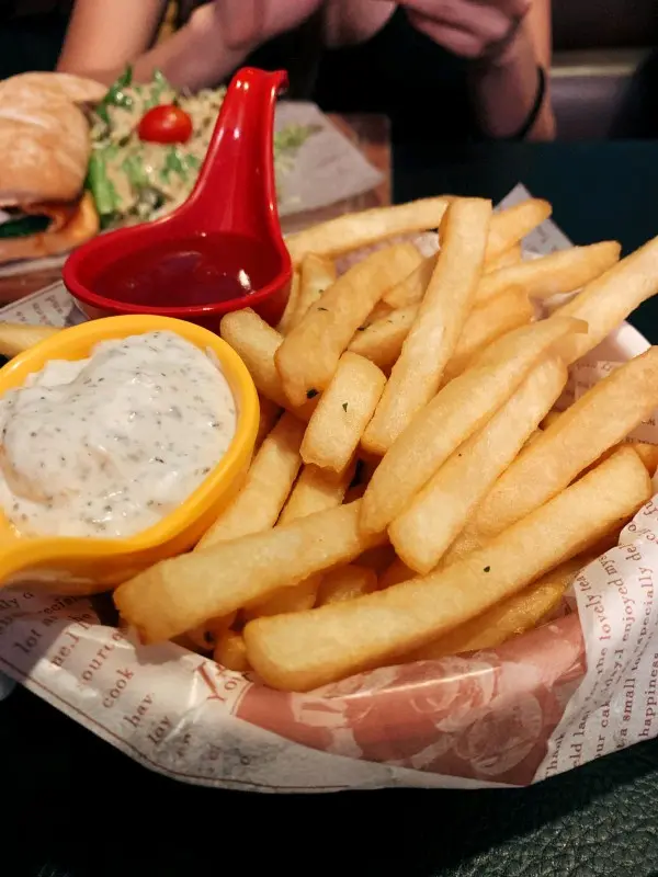 旺角Mafe Cafe 孖啡 地點位置方便食物款式大路,總有款 你會喜歡最重要係上到去你可以坐好耐,同班friend玩棋board game, 睇電視做咩都得, 店員唔會趕你走,炎炎夏日又成日落大雨, 上去食下野傾下偈hea返個零鐘, 歎下冷氣都舒服呀-全日早餐 材料 超豐富, 滿滿的放在碟上差點放不下 煙三文魚肥美,紐倫堡腸長長一條,炒蛋夠滑,焗豆,沙律,同香口牛角包,食完一份超飽。-凱撒沙律另外仲叫咗凱撒沙律新鮮沙律菜超多,仲有鹹香煙肉碎鋪滿載上高,炎炎夏日食返個沙律夠清新-龍蝦湯跟餐叫多咗個龍蝦湯,濃郁又夠暖胃。-柑桔紅茶最喜歡下低 有椰果 粒粒, 冰涼 解渴。…查看更多