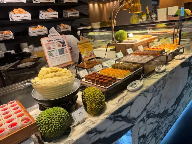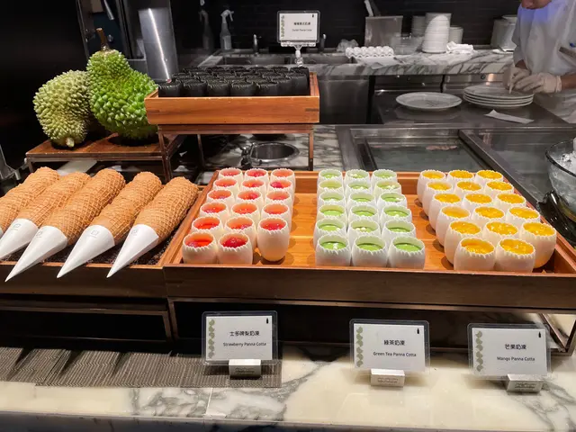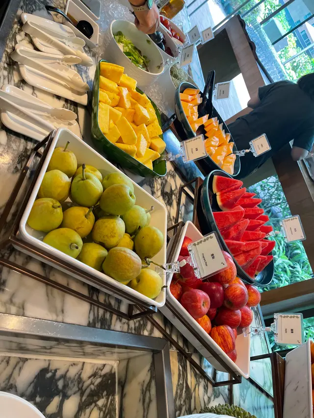 The Market自助餐這間酒店最出名是他的榴蓮甜品,雖然我不喜歡吃榴槤,但亦被這裡的自助餐排場所吸引,結果亦沒有令我失望。首先酒店的人流控制和管理做得很好,是人山人海,但秩序井然,沒有人插隊打尖,準時入場進食,氣氛甚佳。雖然人很多,但食物供應絕對足夠,補給的速度很快,沒有食物短缺的問題和疑慮。而且食物的質素很高,美味,質感,新鮮,設計又好有心思。有即煎的鴨肝,香口,脆皮,有油脂的豐腴香味,好吃得不得了。還有即切即吃的魚生,有三文魚,吞拿魚,都是我喜愛吃的刺身。非常新鮮,而且很香,很豪邁,有厚切選項,吃起來相當肥美,而且毫不油膩。是相當滿足的味覺享受。師傅毫不吝嗇,待客亦相當恭敬有禮。服務員也是相當親切殷勤。我最喜歡的甜品雖然不是榴槤,但是有我喜愛的朱古力雪糕,是Godiva品牌, 相當奢華,可以任食感覺相當幸福。朱古力味超濃郁,甜而不膩,入口即融,是極緻的味覺享受。還配上脆筒,材料擁有都非常新鮮。炸榴槤是另一款我很喜愛的甜品。脆皮做得非常好,有薄又輕盈,絲毫沒有半點油膩的感覺。而且是即場炸起的,難得吃到這樣新鮮的甜品,可遇不可求。榴槤的味道很突出。即使害怕吃榴蓮的人也會一試愛上,我就是其中之一。…查看更多