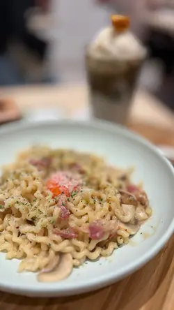 呢间平时系出名绿茶,但喺APM呢度系有埋嘢食,间唔时我都会嚟依度食,之前佢有个乌冬都觉得几好味嘅,最近就转咗餐牌,即管就试吓啦。最近好兴扭扭粉,见到佢有一个卡邦尼扭扭粉,就试吓啦,嚟到嘅时候个样都唔错,啲酱汁都足够,中间有一个蛋黄,卖相都唔错。平时有食开卡邦尼,都好钟意食,钟意Creamy嘅口感,但系呢个意粉,我食唔出佢嘅味道,又唔觉有Creamy,又唔系咸,唔知系咩味。佢个意粉,唔算好弹形,觉得有少少生生地,唯一我觉得好食系反而佢嘅烟肉,下次唔会再食。评分:👍🏻👍🏻/5整体味道指数:😋😋/5性价比:💰💰/5环境:❤️❤️❤️❤️/5服务:✅✅/5…查看更多