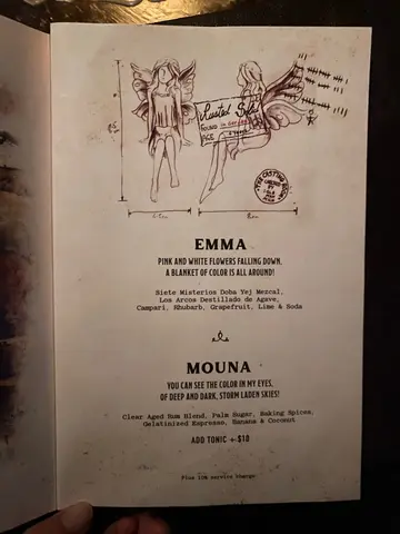 This bar features a sleek, moody interior with dim lighting and candle-lit tables that create a cozy, intimate vibe. The space feels open and comfortable, making it a nice spot to unwind with friends after dinner. We came here just to grab a drink and catch up. Each of us ordered one of their signature cocktails — presentation was thoughtful, but the flavors leaned quite sweet and lacked depth.Erin Goes to Paris - had a delicate, floral profile with hints of guava and mandarin spray. Visually elegant, but the sweetness slightly overpowered the more subtle notes.Scarlet - was smooth and minty, with a dessert-like sweetness from the vanilla and tea-infused whiskey.The overall atmosphere made up for it. It’s a solid choice for a casual night out, especially if you’re looking for somewhere relaxed to chat and sip in style.…查看更多