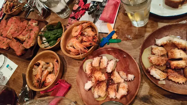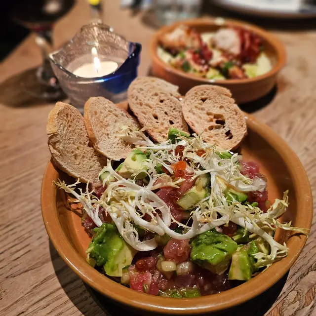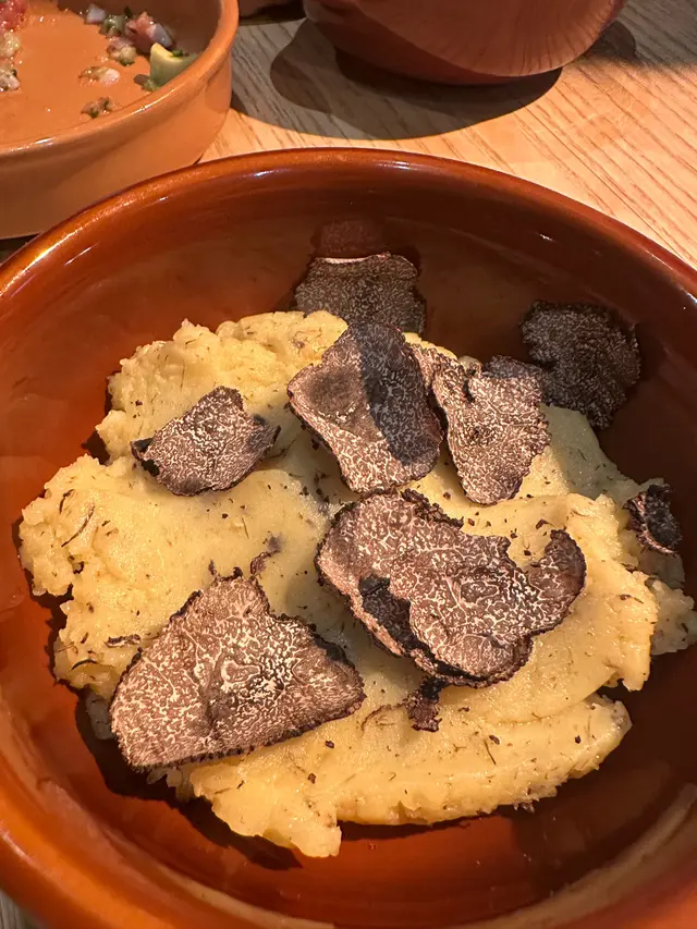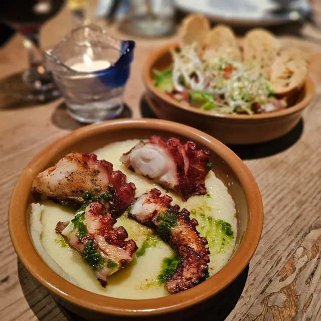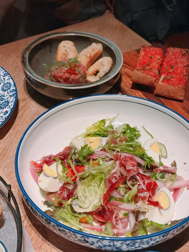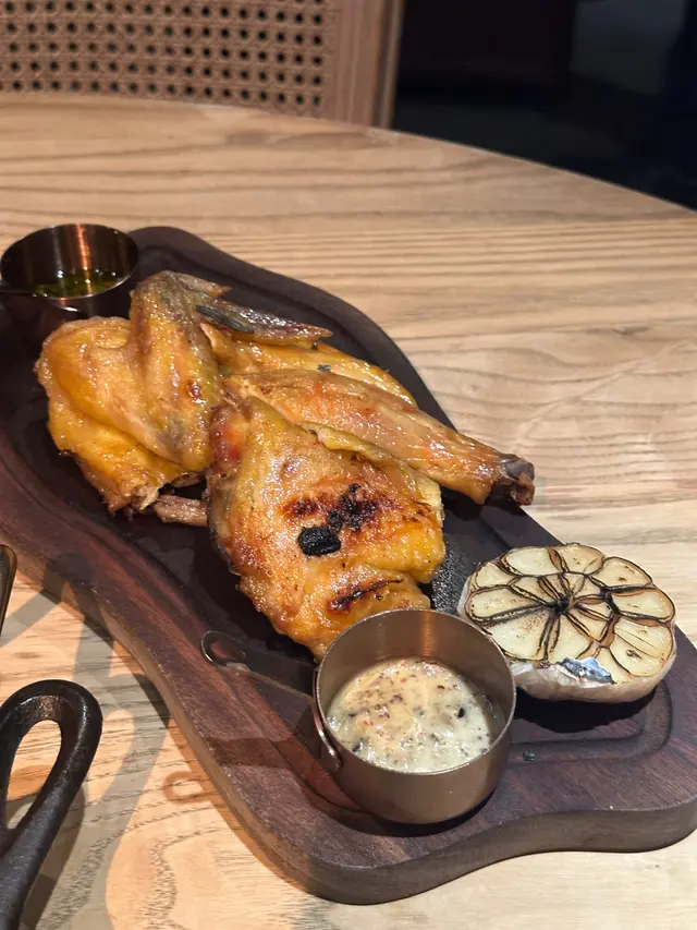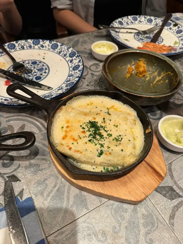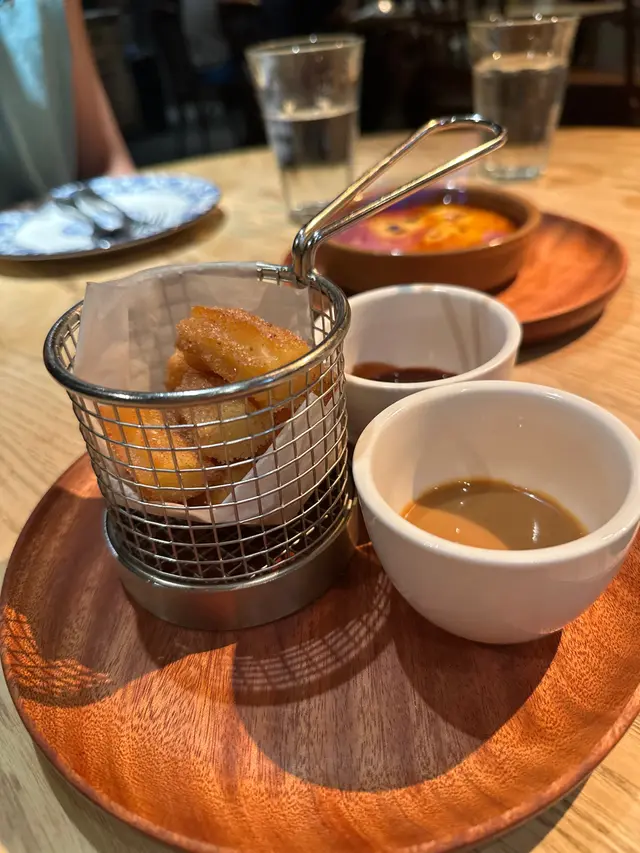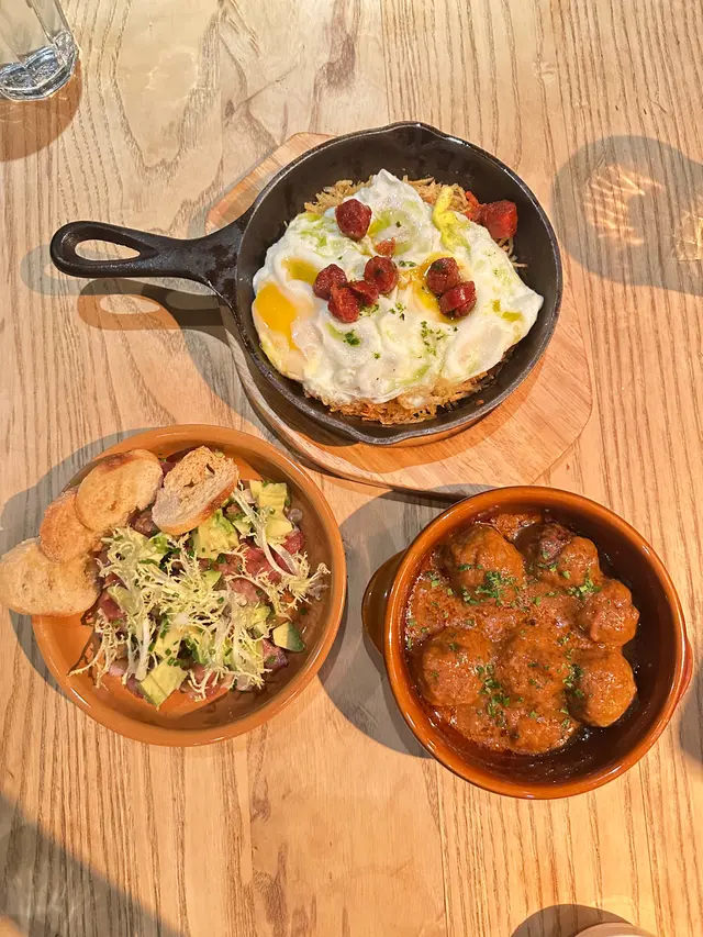 位於灣仔的西班牙餐廳。這間餐廳藍綠色的門面矗立於軒尼詩道甚為搶眼,裝潢以歐陸風格為主,古典典雅,環境舒適且樓高三層,營造寬敞的用餐空間。店內設有酒吧,當天見到不少食客坐在吧枱邊飲酒邊聊天,氣氛悠閒自在;值得一提的是,當天剛巧有食客慶生,店員手持手搖鼓與結他,跑到桌前獻唱生日歌,相信會令前來慶生的朋友更添難忘回憶。除此之外,餐廳推出的全新晚市套餐非常抵食,每位包含前菜、主食與甜品,原價500元,現推出兩位只需700元的優惠,性價比超高呢。 ⋆_____ꜱᴇᴛ ᴅɪɴɴᴇʀ $700 ꜰᴏʀ 2______⋆ ✿ ᴛᴀᴘᴀꜱ⧐ 西班牙油蒜大蝦⧐ 香草油墨魚仔西班牙油蒜大蝦選用了大大隻的海蝦,入口爽嫩多汁,鮮味十足,加上香濃的蒜香油脂包裹,味道層次分明。而香草油墨魚仔則口感彈牙,鮮味細膩而不腥,搭配墨魚汁蒜泥蛋黃醬,整體圓潤濃郁卻不失清新。.✿ ᴍᴀɪɴ: ⧐ 澳洲ᴍ3黑安格斯肉眼扒牛扒經過烤煎後,五成熟的熟度恰到好處,外層焦脆,肉質粉嫩,肉味濃郁;雖看似油花不算多,但入口依然飽含脂香。.⧐ 鐵板海鱸鐵板海鱸外皮煎得香脆,魚肉細膩且帶有自然甘甜。搭配蒜香辣蔥為整道菜添上清新辛香,層次豐富且平𧗾。.✿ ꜱɪᴅᴇꜱ: ⧐ 松露薯蓉⧐ 香蔥牛油飯松露香氣濃郁,但略嫌薯蓉質地未夠細滑;總是擔心食不飽嗎,有飯就自然萬事足(笑~香蔥牛油飯香氣撲鼻,牛油的濃香突出,與蔥香搭配後味道鹹香誘人。.✿ ᴅᴇꜱꜱᴇʀᴛ⧐ 西班牙油條粒西班牙甜品必點之一。切成一口狀的西班牙油條,一口一粒,食不停口;搭配朱古力醬及焦糖醬,香甜又煙韌。.⧐ 3吋芝士蛋糕 ᴄʜᴇᴇꜱᴇᴄᴀᴋᴇ3英吋高的芝士蛋糕,由職員即席在旁切割後並呈於桌上。經典的焦香外皮,芝士內餡軟滑濃郁,甜度恰到好處。.✿ ᴅʀɪɴᴋꜱ: ʀᴇᴅ ꜱᴀɴɢʀɪᴀ $80┆ᴄᴏʀᴅᴏʙᴀ $68…查看更多