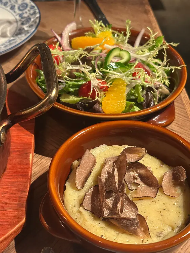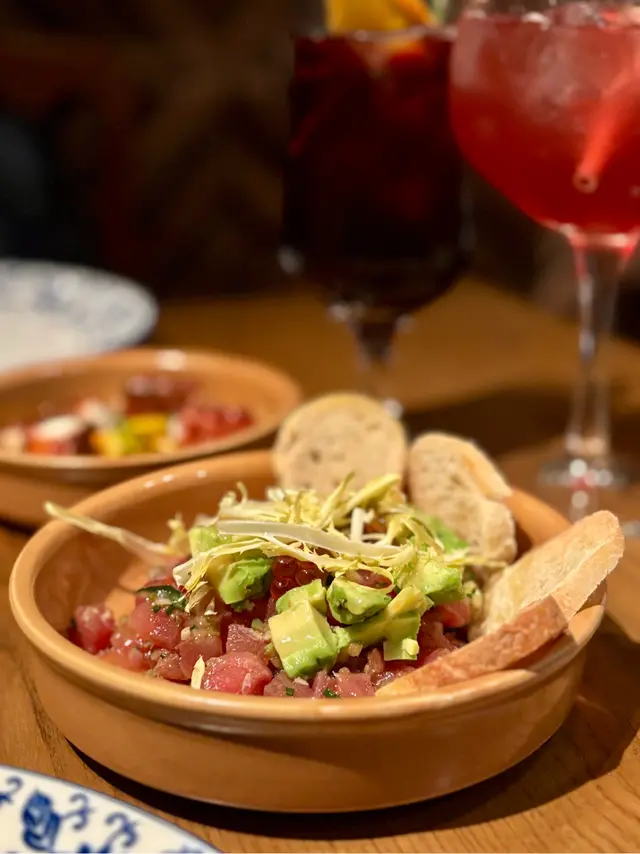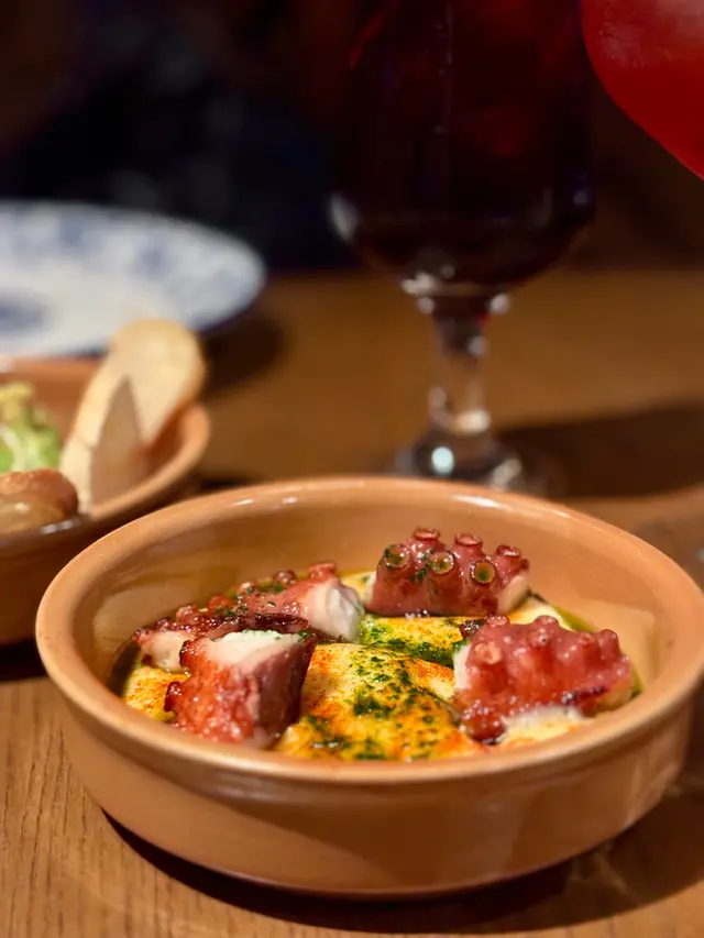😮好難得見到平日三層都坐爆場嘅餐廳! 🇪🇸呢間西班牙菜餐廳超高性價比! $700/2人竟然有齊前菜、主菜、配菜同埋甜品! 我地見之前原價要$500 per head,而家做緊優惠,即刻黎食!餐廳位於灣仔,有3層用餐區,裝潢古典雅緻,staff亦好識同客人互動帶動氣氛,黎慶生、朋友或家庭聚會, business meeting都好岩! 見同場有生日慶祝,waiter會即席彈結他唱生日歌🎸🎂睇到唔少有尷尬癌紅都面晒嘅I人🤣我地點咗Dinner set,先黎前菜➡️”Baby Squid 香草油墨魚仔",墨魚仔鮮嫩彈牙,搭配香草油提升咗味道,每一啖都有海鮮嘅鮮味,食落去好開胃!🤤➡️”Txistorra Broken Egg 西班牙紅椒香腸流心蛋",係必點推介! 西班牙香腸帶少少煙燻味,鹹香惹味,流心蛋一戳就蛋黃流晒出嚟,加埋d脆條,令口感層次更加豐富!👍🏻黎到主菜➡️”Juicy Lobster Rice 原隻波士頓龍蝦燴飯"🦞,個飯吸盡龍蝦汁精華,飯芯保持咬口唔會煮到爛融融。波士頓龍蝦蝦肉唔黐殼,不過個人認為有少少overcook唔夠彈牙,同咪呢道菜係share plate即係1道=2人份,點佢就會揀少樣主菜~佢嘅side dish都唔馬虎,➡️”Truffle Potato Mash 松露薯蓉",滑到好似食緊薯蓉慕絲!黑松露油落得夠重手,每啖都食到松露香味👍🏻 口感輕盈又唔會過於油膩,配飯或單食都好正!☺️最後甜品揀咗➡️”3” Cheese Cake 3吋芝士蛋糕",超級大份,真係有3英吋高!芝士味濃得嚟唔漏,中間有藍莓醬中和膩感,甜度適中,完場甜品揀佢穩陣冇伏!😋➡️”Churros Bite 西班牙油條粒",即炸熱辣辣,油條粒外脆內糯,砂糖肉桂粉灑得夠豪爽😍沾埋朱古力醬罪惡感爆棚,真係完美搭配!👍🏻本身見餐廳評價參差,見有優惠就抱住一試無妨嘅心態去食,唔知係咪改善咗,成個食餐體驗感覺好好,食物整體都好高質抵食,絕對係會放入回訪list,希望佢keep住水準啦👍🏻…查看更多