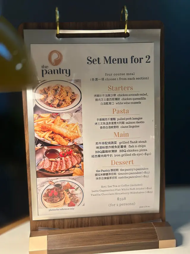 为了庆祝女儿完成小六第一个呈分试考试,期待用优质美食为女儿留下美好回忆。选择了葵芳新都会广场的「The Pantry Cafe」,餐厅装潢采用简约时尚风格,主调是温暖浅木色系,配搭柔和黄光,让用餐气氛倍感舒适和温馨。餐桌及座椅以木质为主,并且空间宽敞。整体感觉简洁有格调,令人十分放松。二人晚餐套餐有四道菜及两杯饮料。头盘精致:白酒煮青口 (White Wine Mussels)一开始的白酒煮青口色泽诱人,青口鲜甜肥美,白酒酱略带酸香,与蒜香交织,家人都吃得津津有味,女儿更赞不绝口。每一颗青口都新鲜饱满,配上酥脆面包沾汤享用,令人意犹未尽。Pasta:手撕猪肉千层面 (Pull Pork lasagne Roll)手撕猪肉千层面以番茄酱为底,酸甜不腻,层层意粉柔软,每一口都感受猪肉的香味和质感。酱汁浓郁、肉碎分量足,家人一致称赞份量适中又很有诚意,特别适合小朋友。主食:纽西兰肉眼牛排 (Iron Grilled Ribeye) - 庆祝必选选了份量十足的纽西兰肉眼牛排(加购),肉眼牛排以铁板煎至外层微焦,肉质鲜嫩多汁,带有丰富油脂,切开后呈现诱人粉红色,每一口都能尝到牛肉的香气和肉汁。配合烤蒜薯条和两款酱汁(忌廉蘑菇烧汁和红酒烧汁),无论原味还是蘸酱都同样美味。肉眼部分特别柔软,有淡淡牛油香,吃起来有弹性又不过于肥腻。肋骨部分保留了骨髓和油花,风味更浓郁,肉质略有嚼劲。骨位烤焗得香脆,胶质和牛香交织特别突出,咀嚼感十足。吃到最后还可以品味骨香,是肉食爱好者不可多得的享受。饮品:香草奶昔 (Vanilla Milkeshakes) - 清新滋味香草奶昔作为套餐额外亮点之一(加购),选用大量雪糕打制而成,入口特别冰凉厚滑,奶昔质地非常浓稠。每一口都感受到丰富奶香及雪糕的甜美,而且不会太腻,非常适合小朋友,女儿一口接一口,为整顿晚餐加添欢乐氛围。甜品:提拉米苏班戟 (Tiramisu Pancakes) - 极致松软提拉米苏班戟绝对是亮点。班戟厚而松软,彷如云朵般轻盈,入口即化,口感细致。上层覆满提拉米苏忌廉,微微苦甜,搭配新鲜莓果与巧克力粉,味道层次多变,视觉亦非常吸引。女儿一边吃一边说像棉花糖,沉醉于这份甜美之中。女儿非常满足,期待下次再来。…查看更多