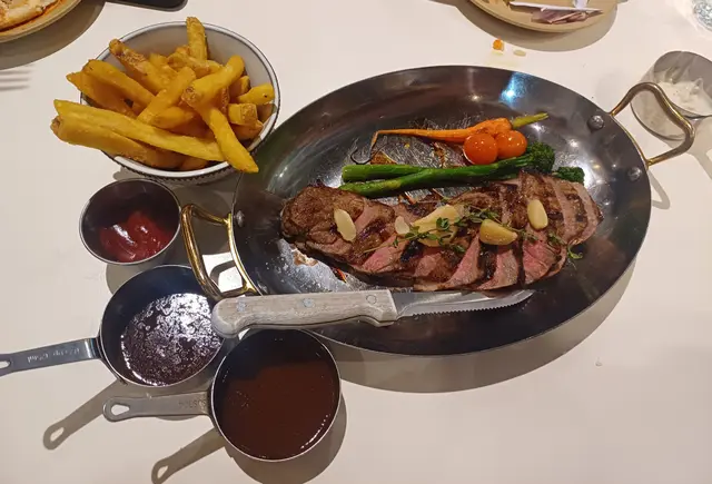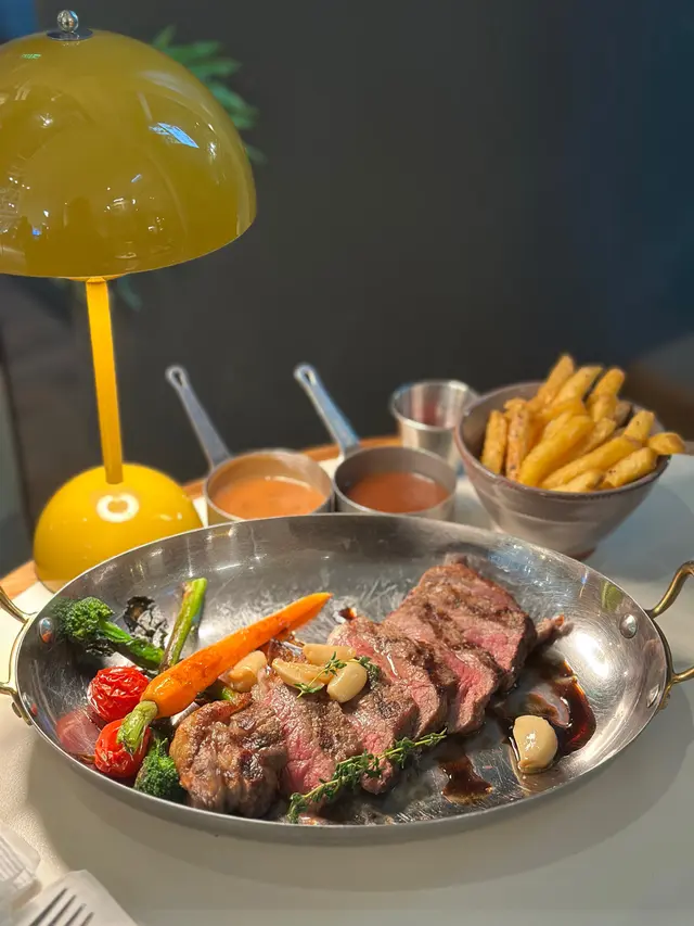 燒安格斯澳洲穀飼牛扒 & 脆炸爆谷蝦肉 & Matcha Cream Pancake & 朱古力奶昔 & 茉莉花茶