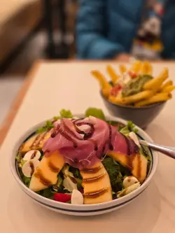 上星期带姑姐去moko食好西Parma Ham & Melon Salad $135咸香既火腿配上香甜蜜瓜&软滑Mozzarella cheese 真系食极都唔厌,沙律菜配黑醋酱十分开胃Sour Cream Works Clips $58薯条外脆内软,蘸埋酸忌廉&牛油果酱,一次满足两个愿望Tom Yum Seafood Risotto $182重口味之选,冬荫功好突出,意大利饭粒粒都系冬荫功既香味,鲜虾大只弹牙仲有另外酱汁蘸,青口鲜甜多汁,贝柱软糯甜美,比目鱼劲香鱼油味Pomegranate Lime Soda $48有断层,打卡一流,味道清爽解腻Pink Guava $35呢杯好少女粉,饮落酸酸甜甜Tiramisu Pancake $130呢个必食~好香蛋味,有咖啡糖浆,Pancake 松软,震腾腾,朱古力薄脆好浓郁松化,酥皮卷食既时候小心,一咬开就散落一地,太松化🤣…查看更多