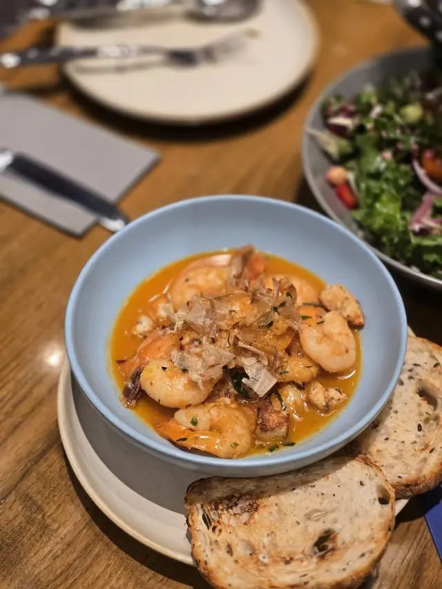 喺荔枝角呢個工貿區搵食,總有驚喜😃 今日同朋友book咗呢間The Pizza Pig,一睇嗰啲名都知佢嘅Pizza係招牌菜,不過原來除咗Pizza其他食物都好高分🥰 餐廳空間感好大,樓底高感覺特別舒適👍 職員服務亦都好好🥰 🌟蒜蓉辣椒牛油大蝦虎蝦非常大隻,吸盡牛油同蒜蓉辣椒精華,蝦肉彈牙得嚟帶微微辣勁,撈埋勁香牛油汁,用香脆面包嚟「索」盡每一滴😚 記得要趁熱食😬🌟羽衣甘藍藜麥雜菜沙律羽衣甘藍唔會「嚡口」,配蜂蜜芥末醬非常match, 紅菜頭甜軟、鷹嘴豆粉糯,仲有脆口南瓜籽同鹹香巴馬臣芝士碎,口感同味道層次好豐富👏食完牛扒後平衡返罪惡感😆🌟特級安格斯肉眼扒12oz (Medium rare) 牛扒切開粉嫩🫶🏻 肉眼特有嘅油香好正👍 外層烤到微焦脆,內裡肉汁鎖滿,簡單用海鹽同黑椒調味已經足夠突顯安格斯濃郁牛味。12oz份量啱啱好滿足肉慾😚 薯條非常厚切,好香脆,超級邪惡😆呢度酒類嘅選擇都好多,啤酒🍻紅酒🍷白酒🥂Cocktail🍸等等一應俱全, 啱晒一班朋友share食同暢談暢飲😚…查看更多
