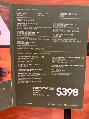 星期二晚同朋友食饭,餐厅环境舒服,而且没有限时,可以同朋友畅谈一番。职员十分有礼貌,而且脸带笑容,亦主动为我哋讲番当日餐汤,手机落单,非常方便。我同朋友叫左二人餐一齐share,我地两个都要都是日餐汤 - 蕃茄汤,蕃茄味不够浓,但不过不失。朋友话想食黑松露薯条,薯条要额外加钱,薯条炸得刚刚,而黑松露酱都好食,点到不停口😋。对比其他pizza,我地都较想食呢个黑松露鸡肉pizza ,但可能同黑松露薯条,pizza 的黑松露比较逊色,但整体不错。我本身好钟意食墨汁意粉,所以就点左海鲜酱墨鱼汁意大利面,可能系煮法问题,加上本人对肠味好敏感,我食到面条略带轻微腥味,所以这个不推介大家唷。朋友叫左个荔枝茶,我试了一口,荔枝味好够,不过偏甜。…查看更多