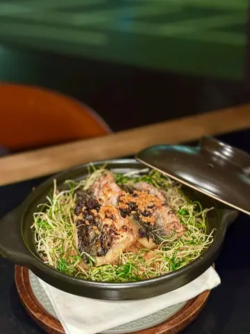 呢间新派中菜馆位于粤海181酒店嘅3楼餐厅嘅装修好靓好时尚 空间宽敞开扬☞︎︎Prabecue Brunch ($668 per adult)☜︎︎︎2小时free-flow冷盘、热盘、小菜、甜品、饮品+自选一款主菜&一款饭面♡︎冷盘❥︎陈年花雕醉鲍鱼✨✨✨鲍鱼爽口弹牙 而且好入味 酒味好香甜好好食 我地不停encore😆 必点!❤️❥︎生腌本湾章红鱼✨✨食落似油甘鱼刺身 新鲜嫩滑 撘配蒜蓉、辣椒同鲣鱼汁一齐食 我几中意☺️❥︎素菌XO冻豆腐✨♡︎热盘❥︎金沙骨✨❥︎避风塘炸豆腐✨❥︎芝麻龙虾多士♡︎小菜❥︎海味啫啫通菜煲✨✨有虾干、瑶柱、鱿鱼 惹味得黎唔会过咸 👍🏻❥︎大根鱼汤浸瓜✨✨鱼汤十分鲜甜 切成丝状嘅青瓜同丝瓜吸收左鱼汤精华 正🫶🏻♡︎主菜❥︎炭烧黑毛猪叉烧✨✨✨选用西班牙伊比利亚黑毛猪肉质十分软嫩 肉味香浓又带有脂香酱汁好入味 面头仲有薄薄一层焦脆好好味!😍❥︎炭烧三黄鸡✨✨✨鸡皮烧至焦脆 呈金黄色 食落有好香嘅炭烤味鸡肉好嫩滑富肉汁 同样都好好味!😍❥︎炭烧海鲜拼盘✨✨竹蛏、大虾、吊桶仔、时令海产当日嘅时令海产系鲍鱼同白鳝海鲜都好新鲜 烤得好好 尤其白鳝同大虾😋不过青酱就略嫌落得多左少少🤏🏻♡︎饭面❥︎麻辣牛筋饭❥︎姜葱虾球拌虾子面❥︎烟鸭自家酸菜淮山面♡︎甜品❥︎焦糖豉油布甸✨其实豉油咸咸地 食落系似海盐焦糖 都几得意😆❥︎椰子糯米西多士✨✨西多士中间夹左糯米同椰丝 面头淋上花生酱同炼奶呢个组合又意外地夹😌两款甜品都唔错 不过我地挂住影合照 无影到甜品相🫢♡︎饮品印象中有果汁、梳打水呢个brunch逢周末同公众假期先有 我地3个饱到捧住个肚🤣有机会一定会encore 再试埋其他菜式😊…查看更多