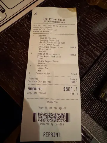 🥩 牛魔王一定钟意呢度食牛扒 @ 🌟 The Prime House 🌟.💁♀️ 图片展示美食:晚市套餐 HKD 388.👀 难得周末可以约埋一齐叹牛扒,晚餐仲要有套餐性价比高,会包括沙律、汤、主菜、配菜,同埋嘢饮。.🍞 热辣辣上枱嘅「自家制百里香蒜蓉牛油餐包」外脆内软,蒜蓉牛油慢慢融化。.🍄 是日餐汤系「蘑菇汤」,打碎咗嘅蘑菇茸口感CREAMY,浓郁有油香,暖笠笠。.🥗 「凯撒沙律」份量算多,罗马生菜爽脆陪烟肉碎,凯撒酱蒜香十足好开胃。.🥩 主打梗系要食牛扒,拣咗「美国平铁牛扒」,有足250g,MEDIUM火候掌控完美,外层焦香内里粉嫩,简单海盐调味已经带出浓厚牛味,点青胡椒酱更惹味。.🍖 另外叫左「威尔斯羊颈柳」,羊脂甘香充满肉汁,份量够大,薄荷酱清新配搭得宜,配上薯条邪恶又满足。.☕️ 跟餐有埋嘢饮,咖啡同绿茶食完牛扒刚好完美中和腻感,为丰富嘅晚餐画上句号。.😋 晚餐食牛扒套餐呢个价钱好抵,大份又好味,有机会可以试吓呢!.📍 湾仔轩尼诗道239号18楼.꧁𖠌ꕥ𖠌ꕥ𖠌ꕥ𖠌ꕥ𖠌ꕥ𖠌ꕥ𖠌ꕥ𖠌ꕥ𖠌꧂.…查看更多