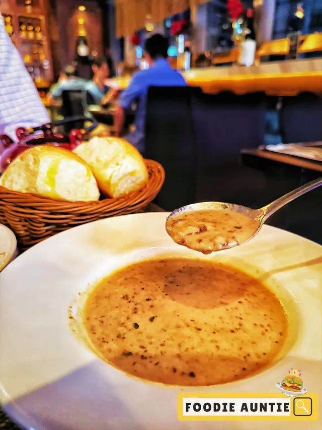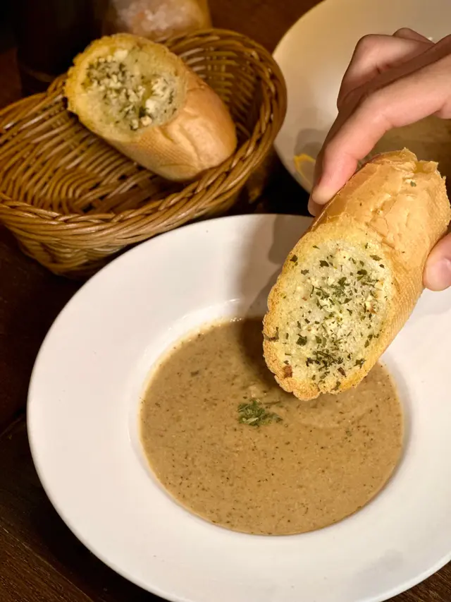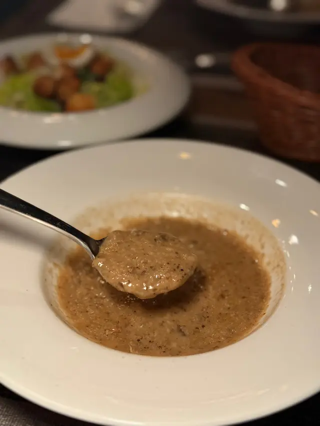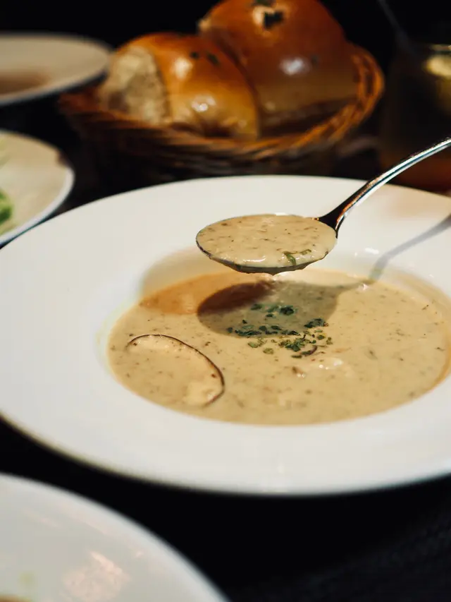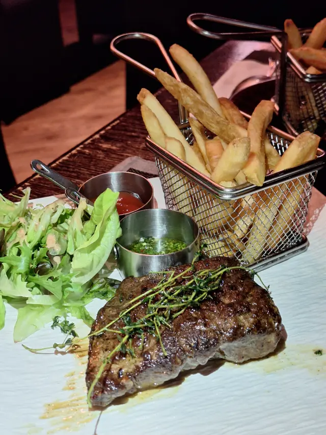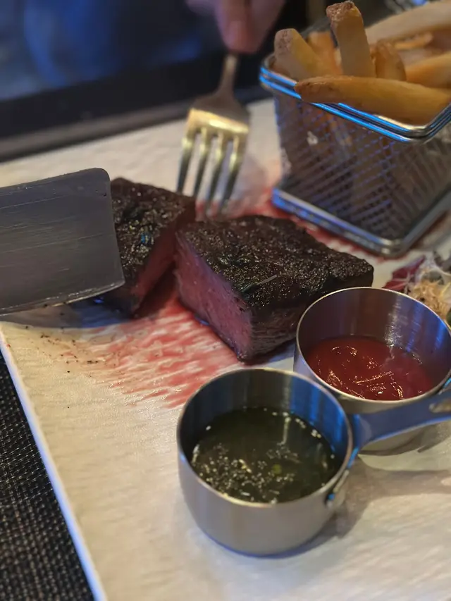 2025年9月25日 星期四今晚難得同太太兩個人食飯,於是選擇咗一間比較有情調嘅餐廳,就係位於灣仔軒尼詩道餐廳裝修得非常有格調,無論燈光、音樂同氣氛都好浪漫,非常適合兩個人拍拖黎到餐牌有晚市套餐可以選擇,一個價錢就包咗幾個前菜同主食,而主食仲有好多唔同肉嘅部位可以揀,仲有餐飲添,於是我哋就每人叫左一個set點完餐之後等左一陣食物就開始陸續送到,首先有前菜凱撒沙律,沙律味道清爽,生菜脆口,煙肉鹹香微脆,配上濃郁芝士粉同香滑凱撒醬,層次分明麵包粒酥脆不硬,而水煮蛋更令整體更滑順,口感豐富又開胃餐湯有蘑菇湯,個湯質感濃滑,入口即化,帶有淡淡奶香同蘑菇既天然鮮味香草點綴提升層次,令整體味道更有深度每一口都暖胃又舒服,簡單但令人回味呢個係自家製百里香蒜蓉牛油餐包,餐包外皮金黃微脆,內裡鬆軟帶微微煙韌,咬開即滲出香濃牛油百里香清香淡雅,蒜蓉味濃而唔太霸道,完美融合,令人一口接一口停唔到主菜方面我哋分別要左230g安格斯牛頸脊牛扒同230g 美國平鐵牛扒,兩樣都要大約5成熟,牛扒外層煎至微焦,鎖住肉汁,切開時肉質嫩滑多汁,帶有濃郁牛香而安格斯牛特有既油花令口感更豐富,配上香草與醬汁,味道層次分明,令人回味無窮美國平鐵牛扒就肉味濃郁,油脂分布均勻,煎至外層微焦,內裡仍然保持嫩滑每口都帶有焦香同牛肉本身既鮮味,口感紮實但不韌,啱晒鍾意原汁原味嘅牛魔王最後埋單每人四百幾蚊左右,食得好滿足…查看更多