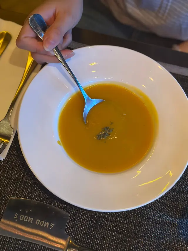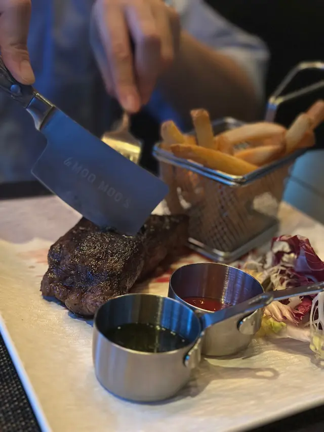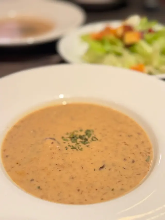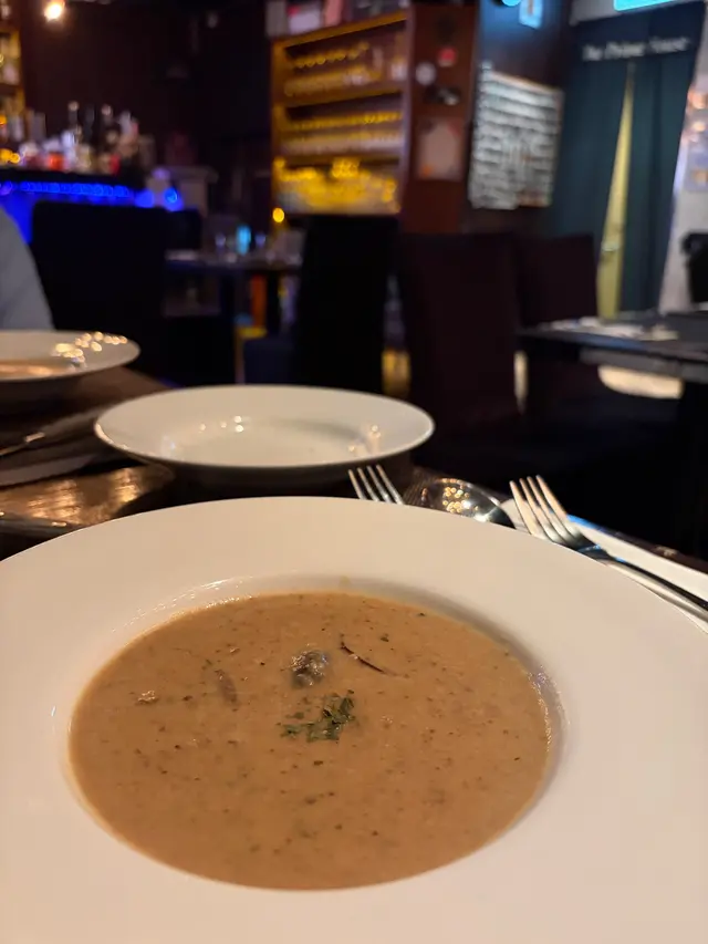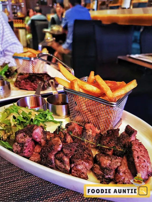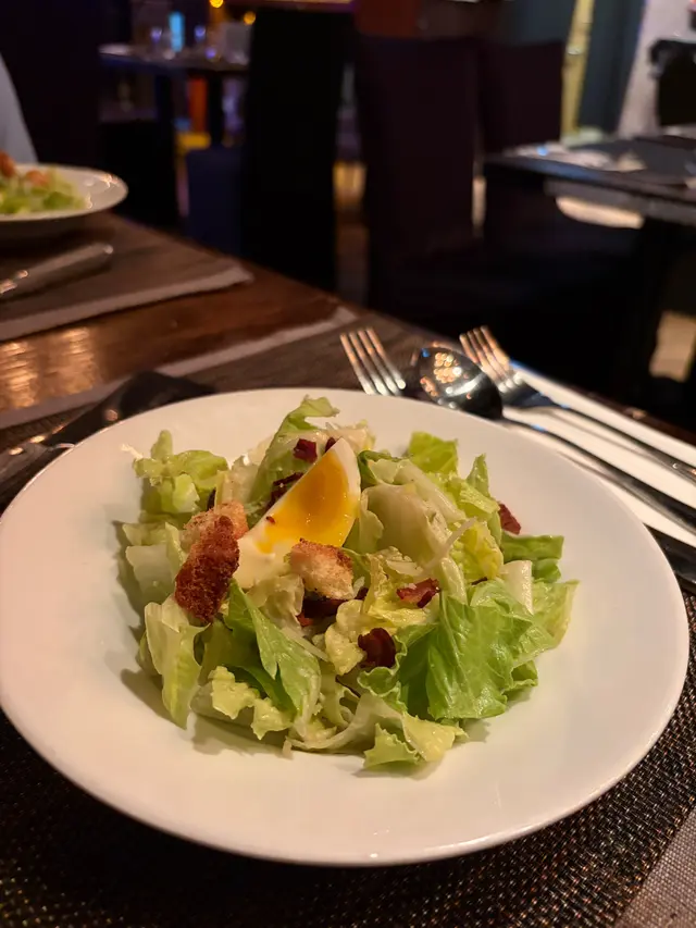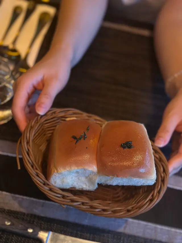 2025年9月25日 星期四今晚難得同太太兩個人食飯,於是選擇咗一間比較有情調嘅餐廳,就係位於灣仔軒尼詩道餐廳裝修得非常有格調,無論燈光、音樂同氣氛都好浪漫,非常適合兩個人拍拖黎到餐牌有晚市套餐可以選擇,一個價錢就包咗幾個前菜同主食,而主食仲有好多唔同肉嘅部位可以揀,仲有餐飲添,於是我哋就每人叫左一個set點完餐之後等左一陣食物就開始陸續送到,首先有前菜凱撒沙律,沙律味道清爽,生菜脆口,煙肉鹹香微脆,配上濃郁芝士粉同香滑凱撒醬,層次分明麵包粒酥脆不硬,而水煮蛋更令整體更滑順,口感豐富又開胃餐湯有蘑菇湯,個湯質感濃滑,入口即化,帶有淡淡奶香同蘑菇既天然鮮味香草點綴提升層次,令整體味道更有深度每一口都暖胃又舒服,簡單但令人回味呢個係自家製百里香蒜蓉牛油餐包,餐包外皮金黃微脆,內裡鬆軟帶微微煙韌,咬開即滲出香濃牛油百里香清香淡雅,蒜蓉味濃而唔太霸道,完美融合,令人一口接一口停唔到主菜方面我哋分別要左230g安格斯牛頸脊牛扒同230g 美國平鐵牛扒,兩樣都要大約5成熟,牛扒外層煎至微焦,鎖住肉汁,切開時肉質嫩滑多汁,帶有濃郁牛香而安格斯牛特有既油花令口感更豐富,配上香草與醬汁,味道層次分明,令人回味無窮美國平鐵牛扒就肉味濃郁,油脂分布均勻,煎至外層微焦,內裡仍然保持嫩滑每口都帶有焦香同牛肉本身既鮮味,口感紮實但不韌,啱晒鍾意原汁原味嘅牛魔王最後埋單每人四百幾蚊左右,食得好滿足…查看更多