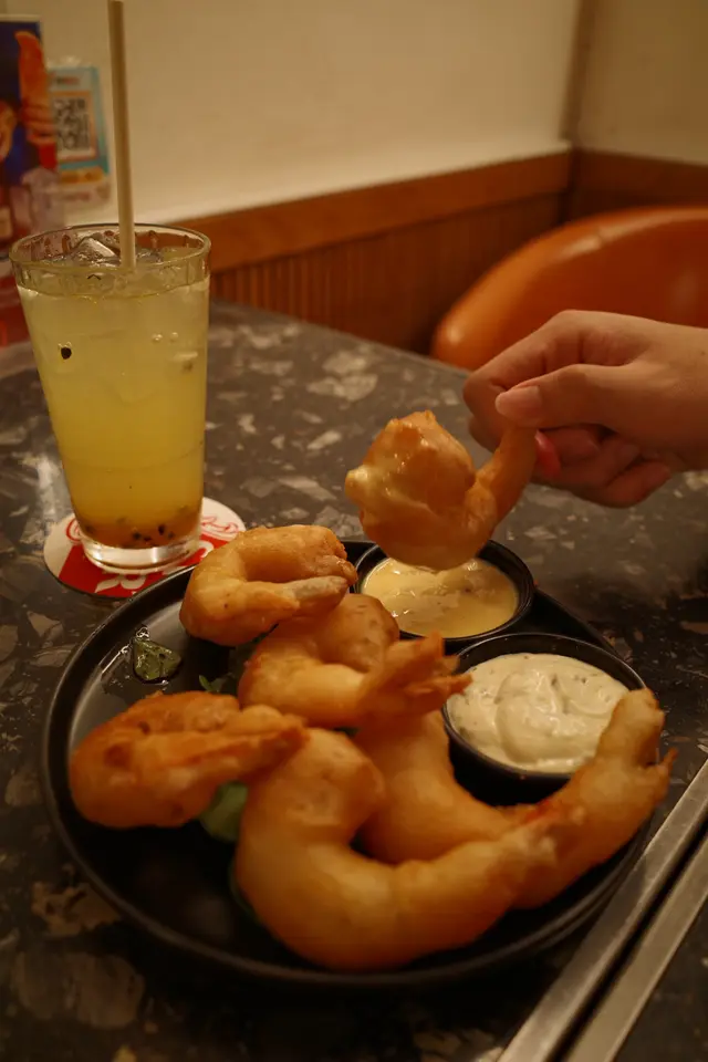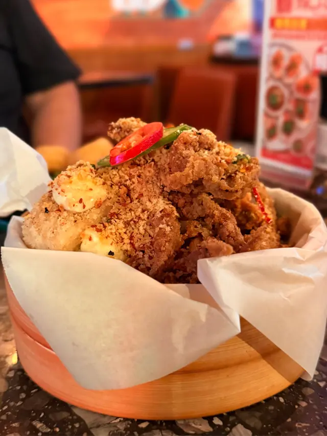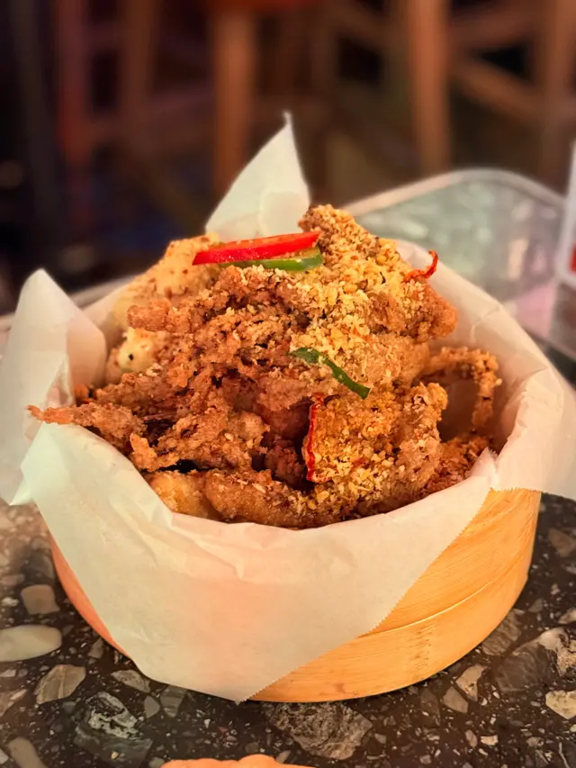 尖沙咀一間高質特色西餐廳,同時融合地道港式風格。週末更有駐場歌手演唱,氣氛滿滿~👊🏻👊🏻👊🏻👊🏻👊🏻👊🏻👊🏻👊🏻👊🏻👊🏻👊🏻👊🏻👊🏻👊🏻👊🏻👊🏻👊🏻♡ 避風塘大雜燴 $188:- 蘿蔔糕、豆腐、魷魚鬚、雞翼魷魚鬚同雞翼都炸得卜卜脆🙈,好惹味。表面洒滿炸蒜,避風塘風味十足。值得一提入面嘅蘿蔔糕,食落有一陣清新蘿蔔味,口感十分軟糥,絕對食過返尋味🤩。豆腐亦非常嫩滑creamy ,好驚喜😍。♡ 啤酒漿炸蝦 $148 :外皮金黃酥脆,蝦肉q彈鮮嫩🥰。搭配沙律醬口感豐富☺️。♡ 帶子辣肉腸扁意粉 $218 :帶子煎得外焦裏嫩,微微焦香。辣肉腸鹹辣口味搭配濕潤扁意粉,食落非常有層次。👊🏻👊🏻👊🏻👊🏻👊🏻👊🏻👊🏻👊🏻👊🏻👊🏻👊🏻👊🏻👊🏻👊🏻👊🏻👊🏻👊🏻現場氣氛好好,仲有調酒師即場調酒🍸好chill 好啱聚會🥳。…查看更多