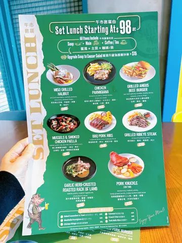 🌹今年公司团年饭,中餐都爆满,唯有选其他,在OpenRice搜寻订位,发现了《Salted Pig》,这间食店在鲤景湾很久,虽然一直没有去过,见它有开分店,又睇过下食评,又有位订,便决定拣它。🌹食店位于葵芳站新都会广场,交通便利易找,不用上到餐厅楼层,远处已望见只飞猪在店前。餐厅属半开房式,部分座位是溶入商场内,感觉是较光猛,优闲风格。一行7人,每人点了自己的喜好🍴西京烧比目鱼$98