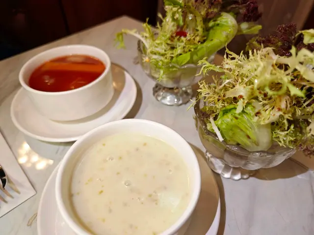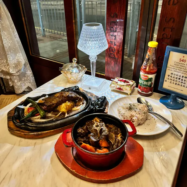 🔹️昨天到筲箕灣 “The Starred” 餐廳午餐🍽餐廳富有情調🎶 環境衛生🌿 食物高質😋 份量滿滿👍 各店員親切有禮、貼心極致👩🏻💼👨💼 怪不得除了堂食外, 外賣也深受歡迎🛍 價錢親民💰💫五道菜豐盛全餐(每套餐以一款主食 + 沙律杯 +餐湯 + 飲品 +甜品) 只需$80, 我們點了兩份😋🔸️沙律杯🥗以迷你意大利初榨橄欖油黑醋沙律杯, 沙律杯精緻, 十分鮮嫩, 加以橄欖油和黑醋汁更加開胃🍴💫餐湯🍵🔸️雜菜湯🥣以蕃茄、洋蔥、芹菜等食材, 味道香濃可口, 健康高纖🥄🔸️紫椰菜忌廉湯🫐以奪目粉紫色忌廉湯上陣, 其以紫椰菜炮製, 含豐富膳食纖維, 低脂肪、低熱量, 口感綿密👍🔸️琺瑯鍋飯 • 燒汁燴紐西蘭牛肉眼 • 温泉蛋 • 紅糙米飯🥘紐西蘭牛肉眼含濃郁的牛肉味、富彈性有嚼勁, 其油花平均和味道鮮甜,口感軟嫩多汁, 加上滑嘟嘟温泉蛋☺️營養紅糙米飯🍚 利用琺瑯鍋導熱均勻, 能讓米飯更充分受熱, 煮出來的飯更香更Q彈🥢🔸️鐵板豬梅扒 • 迷迭香蒜蓉汁 • 温泉蛋 • 意大利粉🥘🍝從遠處已聞到香噴噴, 豬梅扒肉質厚切, 軟嫩香滑兼充滿油香, 加上惹味蒜蓉汁, 令味道更昇華, 還有清爽秋葵、滑嘟嘟温泉蛋和爽彈意粉🤤🔸️西班牙巴斯克焦香芝士蛋糕🧀🍰以濃郁芝士鹹香味, 並帶有焦糖般的焦香, 甜度適中、口感輕巧軟綿、十分順滑😋🔸️即磨咖啡☕️咖啡味道香醇, 口感順滑😊🔸️菠蘿汁🍍🥃👍以100%新鮮菠蘿汁, 味道清新香甜👍🔸️凱撒沙律🥗另加點了凱撒沙律🥗 以香脆麵包粒、香甜葡萄乾、鮮嫩爽脆羅馬生菜、鹹香芝士和鮮甜車厘茄🍴…查看更多