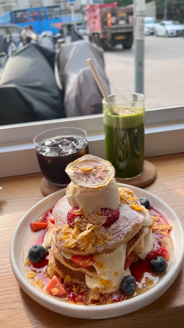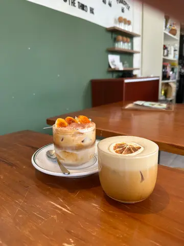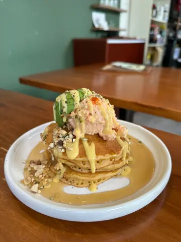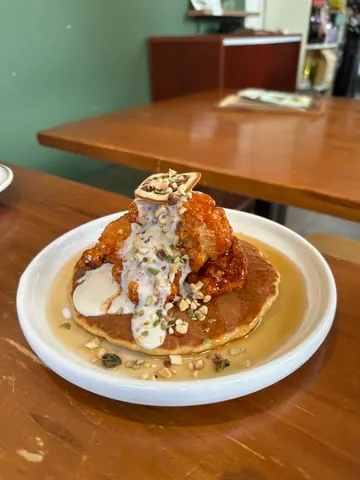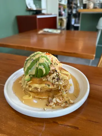 假日约了友人去元朗一转,话时话好耐冇去过了,即睇有咩好野食,之前听人讲有间Cafe几正,趁今日去试下。店面好文青feel,都几易认,差唔多13:00去到,食饭时段,果然好多人要等位,出面好热但一场来到照等,等左大约20分钟到有位。小小的店子,位子不多,但又唔觉太迫,以白及绿色为主调,木系枱椅及对窗的吧枱,有著自然之感。餐牌,拣左人气之选。Yuzu Cold Brew,$56,以橙片干作点缀卖相清新,咖啡口感顺滑,有咖啡香同时饮到清香的柚子味,味道清爽醒神。Banananatte,$62,友人的,人气之一,试下啖个味都几好。Oppa's Chicken,$108,咸甜兼备的人气班戟,炸鸡份量适中,外层香脆鸡似嫩,酱汁酸甜开胃几好味,班戟口感松软,糖桨及酱汁份量十足,因为有炸鸡系面层,班戟味道香甜得来有少许咸但夹到,味道不俗。Mr Lobster,$108,小龙虾沙律配牛油果,口感丰富味道清香,食到少许虾肉及鲜甜味,班戟口感松软湿润,配上糖桨味道香甜,有nuts增添咬口。食物味道不俗,唔怪之得咁受欢迎,下次有机再战。…查看更多