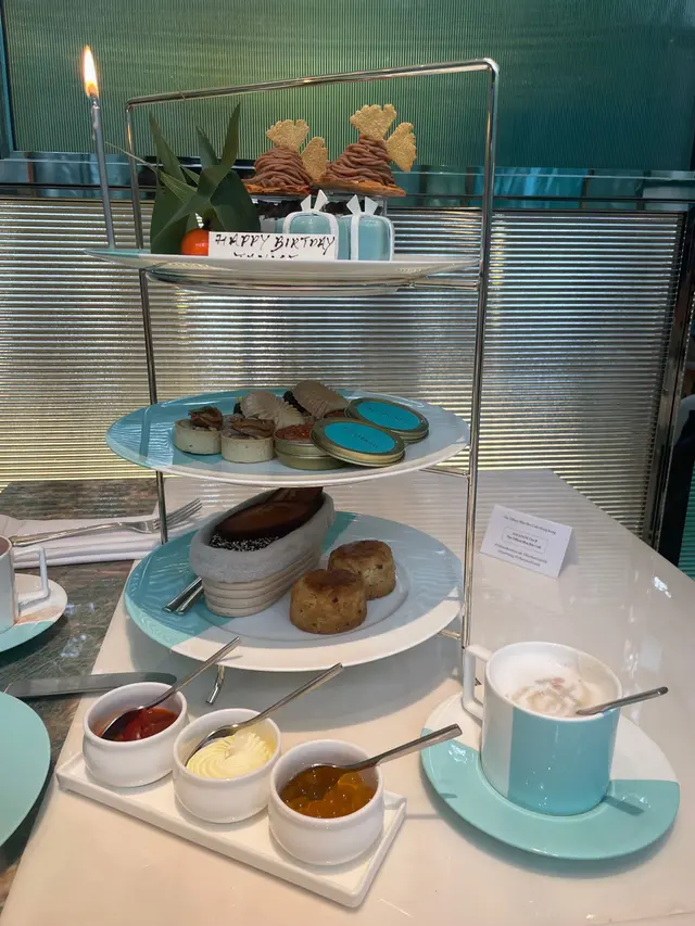 );餐厅嘅tea set食物品质亦都唔系太好食,呢个价钱应该只系食下个气氛同仪式感,之前食其他下午茶都冇咁质素差。不过呢度嘅设计系几特别,Tiffany Blue礼物盒系几靓嘅,见到其他食客一般系女士或者情侣去打卡,影相揾啱角度系OK,但系冇得坐梳化位,影相都唔靓,我去一次打卡就够,下次唔会去了