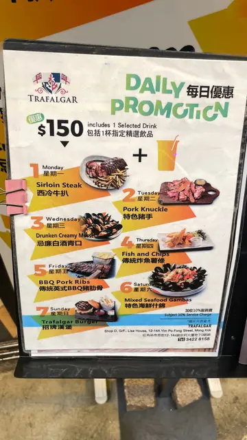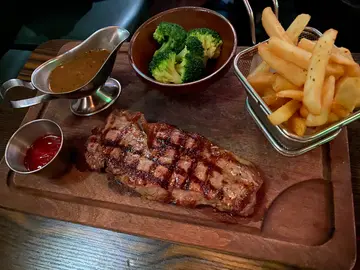 🍚The Trafalgar Brewing Company📍地址: 旺角染布房街12-14A号依利大厦地下D号呢间餐厅想打食评好耐,但之前真系太忙唔记得左,刚好睇相见到,即刻打返先。纯粹约个中间点同朋友吹水小聚一下,朋友想食扒就系openrice揾,见呢间价钱ok又岩食就试下。到达时先发现原来系类似bar, 我地都唔介意就入左去。set的话唔算太多选择,另外有meun可以拣其他野食。餐汤忘记左系咩,应该正正常常,如果唔系我一定记得肉眼牛扒只系$158, 无特别期望仲谂紧会唔会茶餐厅薄牛扒货色🤣点知黎到有惊喜,煎得够香有格纹,又有side dish另外叫左个烩饭,好creamy份量亦大,好食!最后仲有一件蛋糕仔做甜品员工好有礼貌,全程都好舒服,座位唔算多但无赶我地,足足倾左两三个钟,可惜下一日返工,如果唔系我地会叫酒饮,所以绝对会再去🙂!…查看更多
