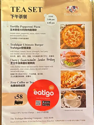 星期六下午路过,$58茶餐非常抵食, 有pizza, 汉堡包或热狗可以拣,包一杯饮品。菲藉侍应好nice, 好好笑容。亦有happy hour, 可以坐最出饮吓啤酒。会再来。…查看更多